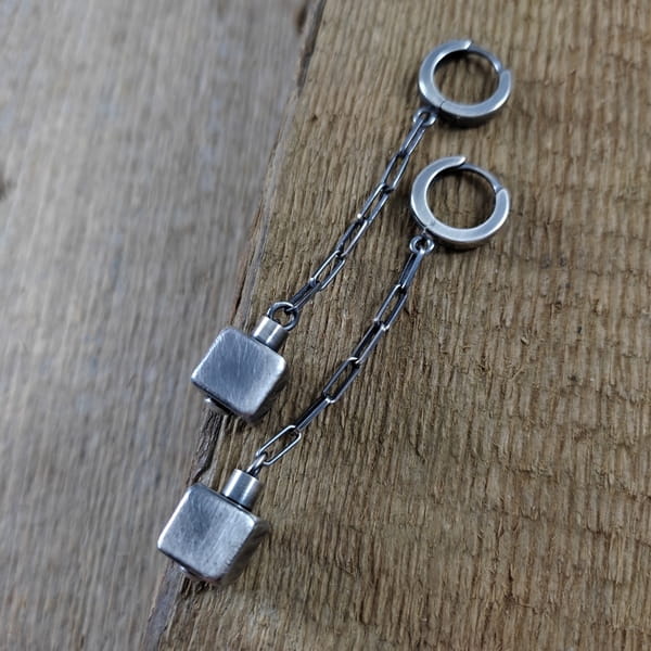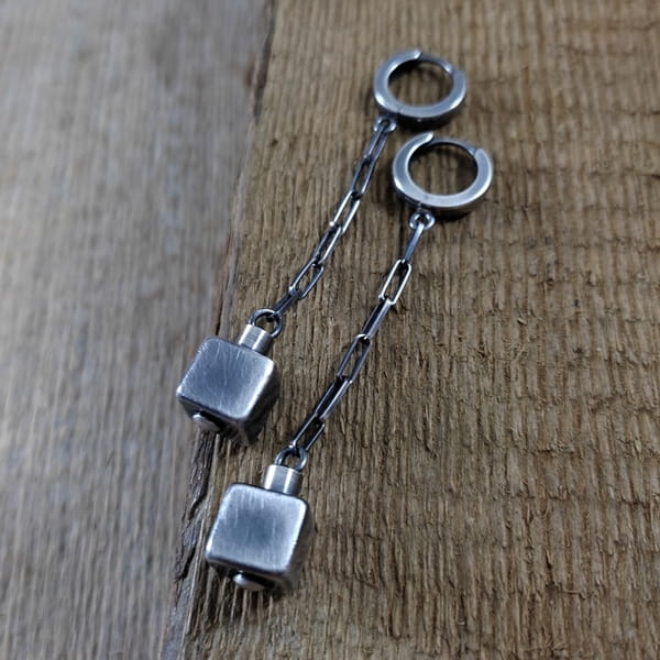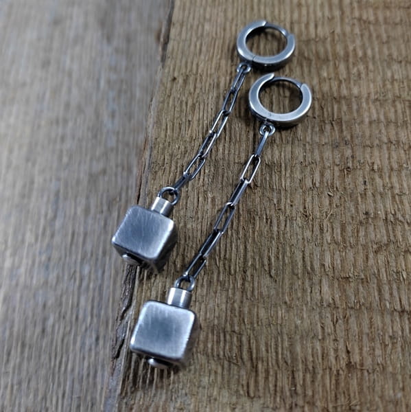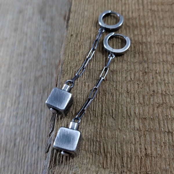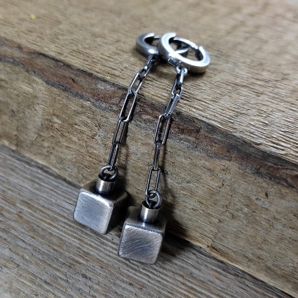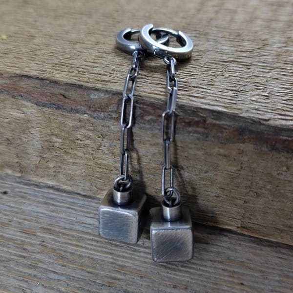 Kolczyki - sześciany na łańcuszku