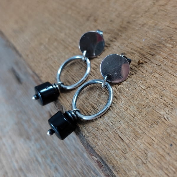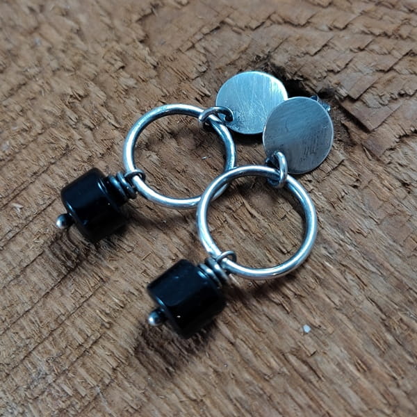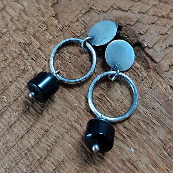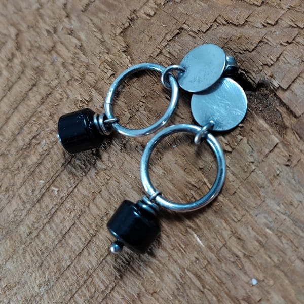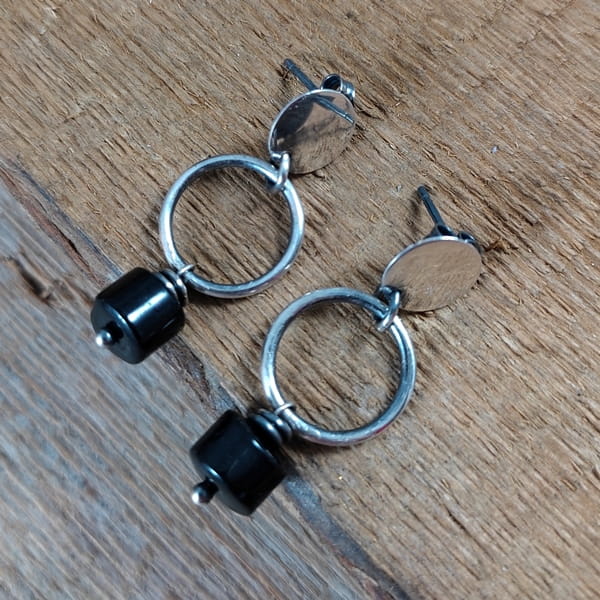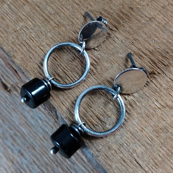 Kolczyki wykonane z fasetowanych oponek turmalinu o średnicy ok. 8 mm. Całość wykończona w srebrze 925, oksydowanym i wypolerowanym. Długość całkowita kolczyków wynosi ok. 3.8 cm. Elegancko zapakowane. Kamienie z delikatnymi niedoskonałościami.