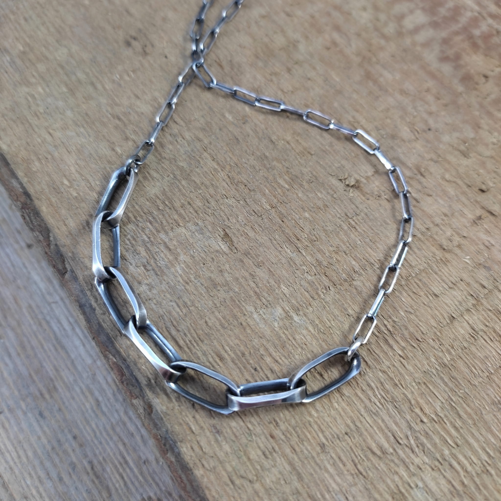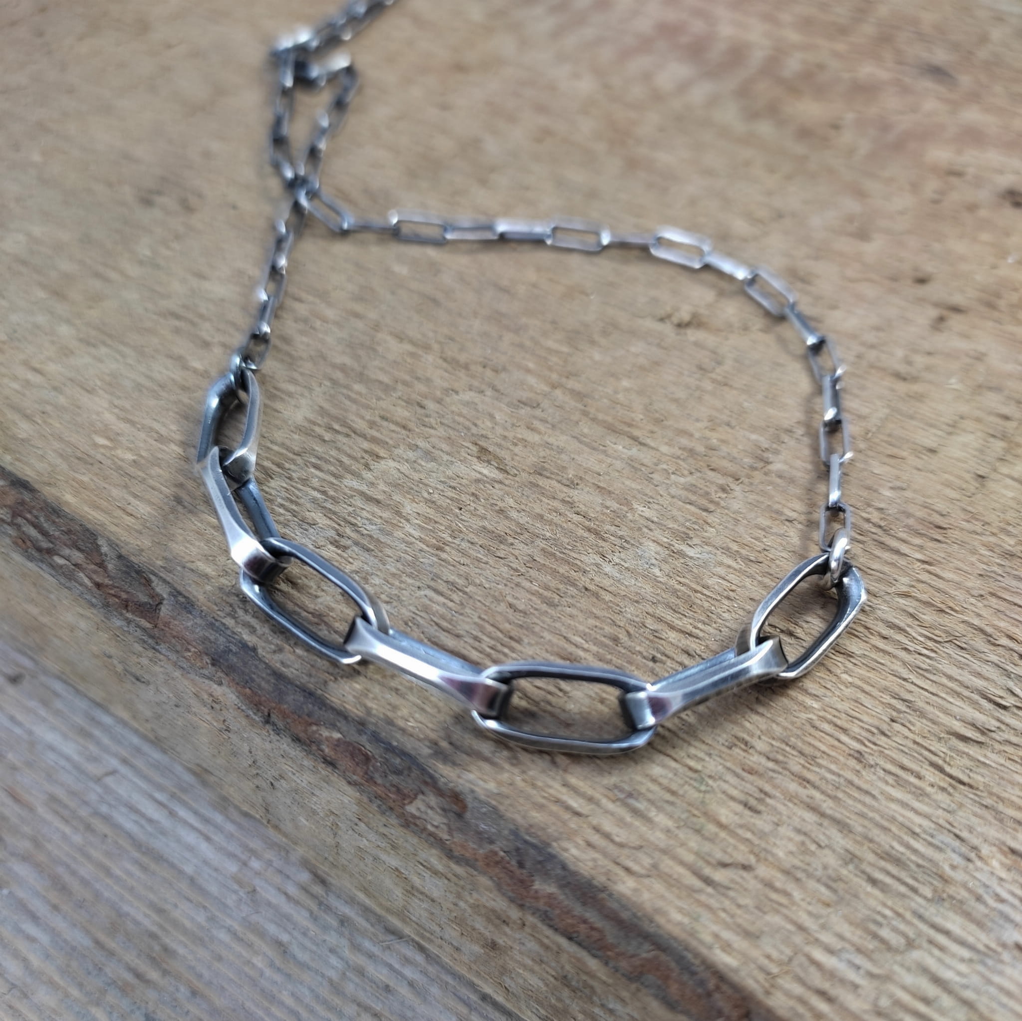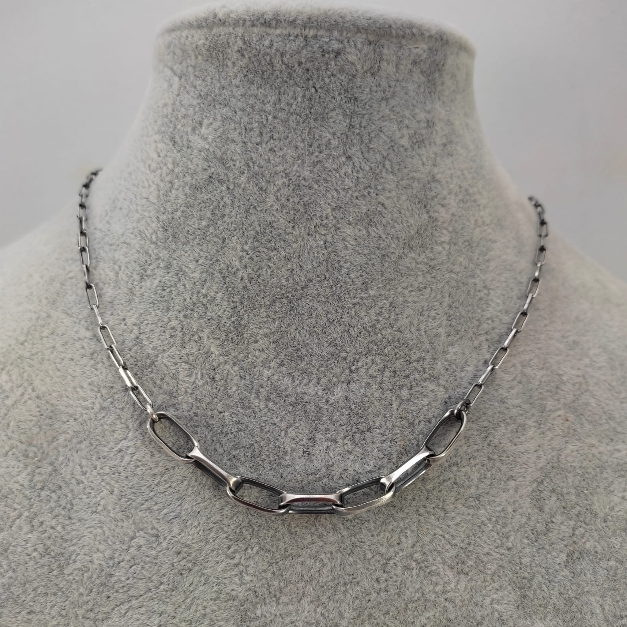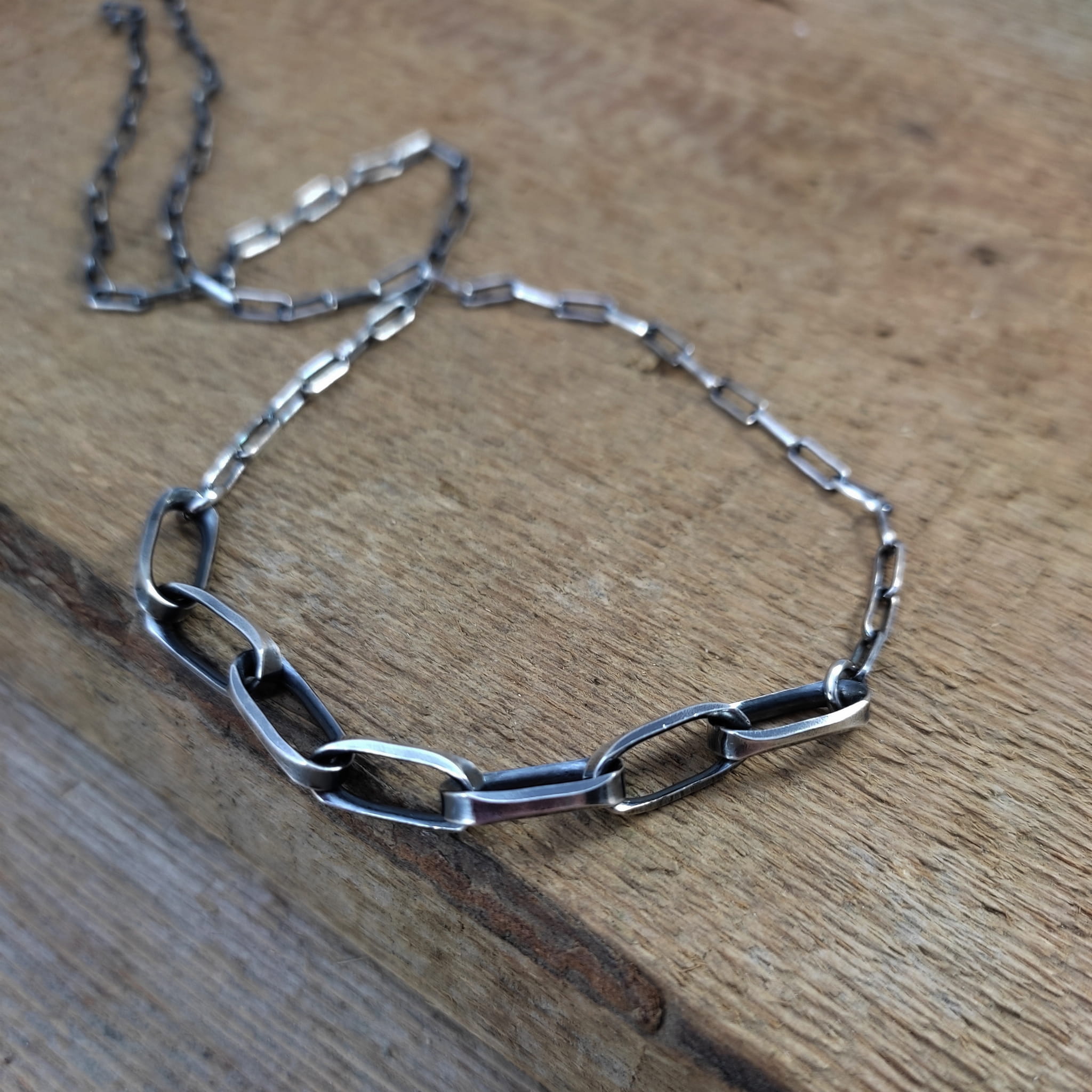 Naszyjnik wykonany ze srebra 925, oksydowanego i wypolerowanego.