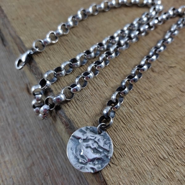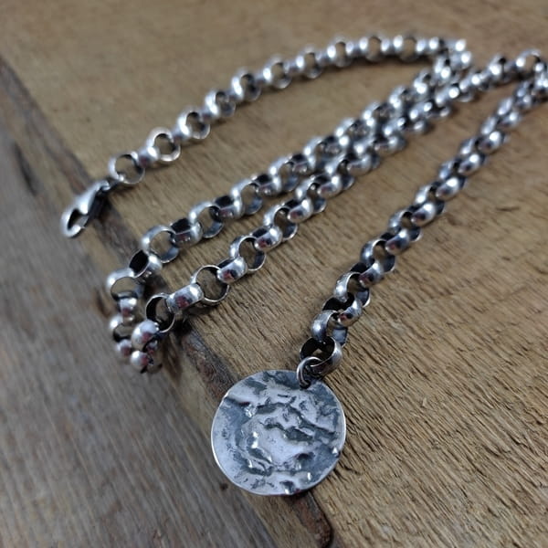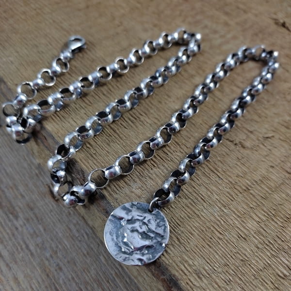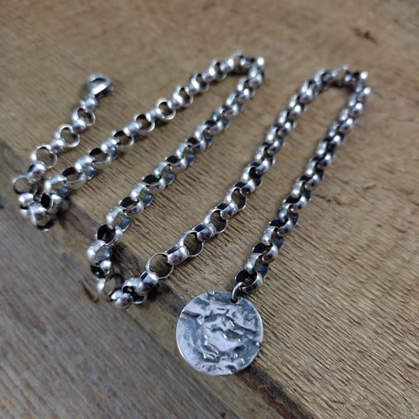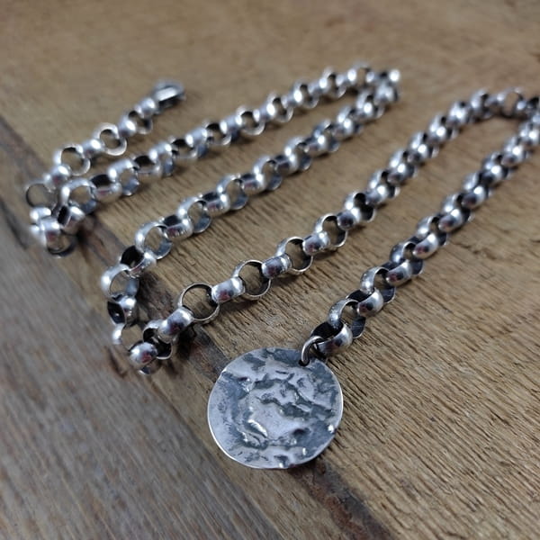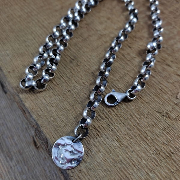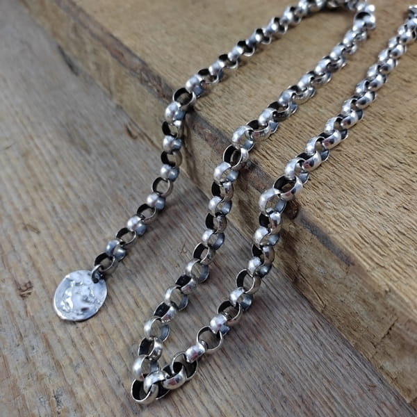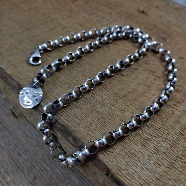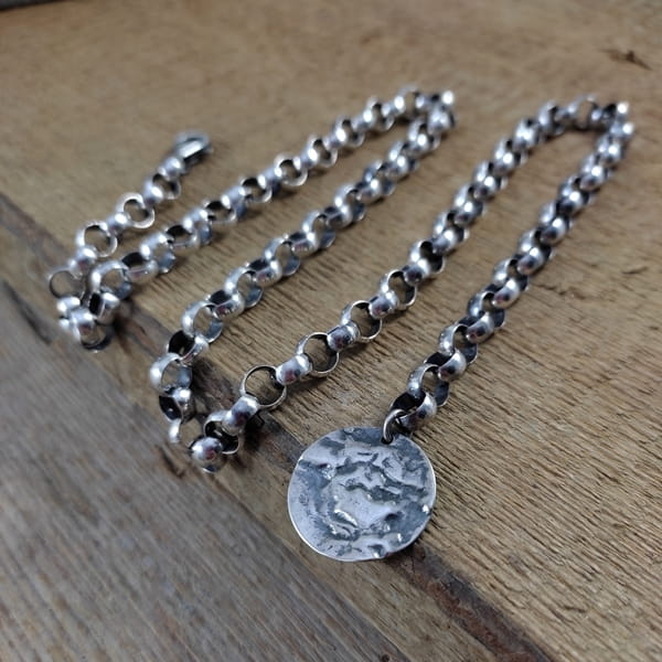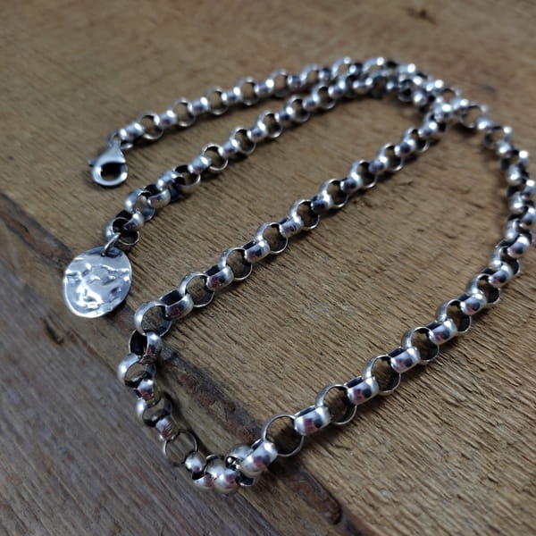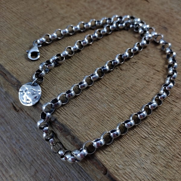 Naszyjnik wykonany ze srebra 925, oksydowanego i wypolerowanego. Długość naszyjnika wynosi ok. 50 cm.