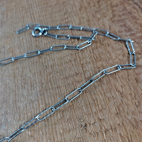 Naszyjnik wykonany ze srebra 925, oksydowanego i wypolerowanego. Długość naszyjnika wynosi ok. 45/50/55 cm (Proszę wpisać w komentarzu, w przypadku braku wysyłamy 50 cm).