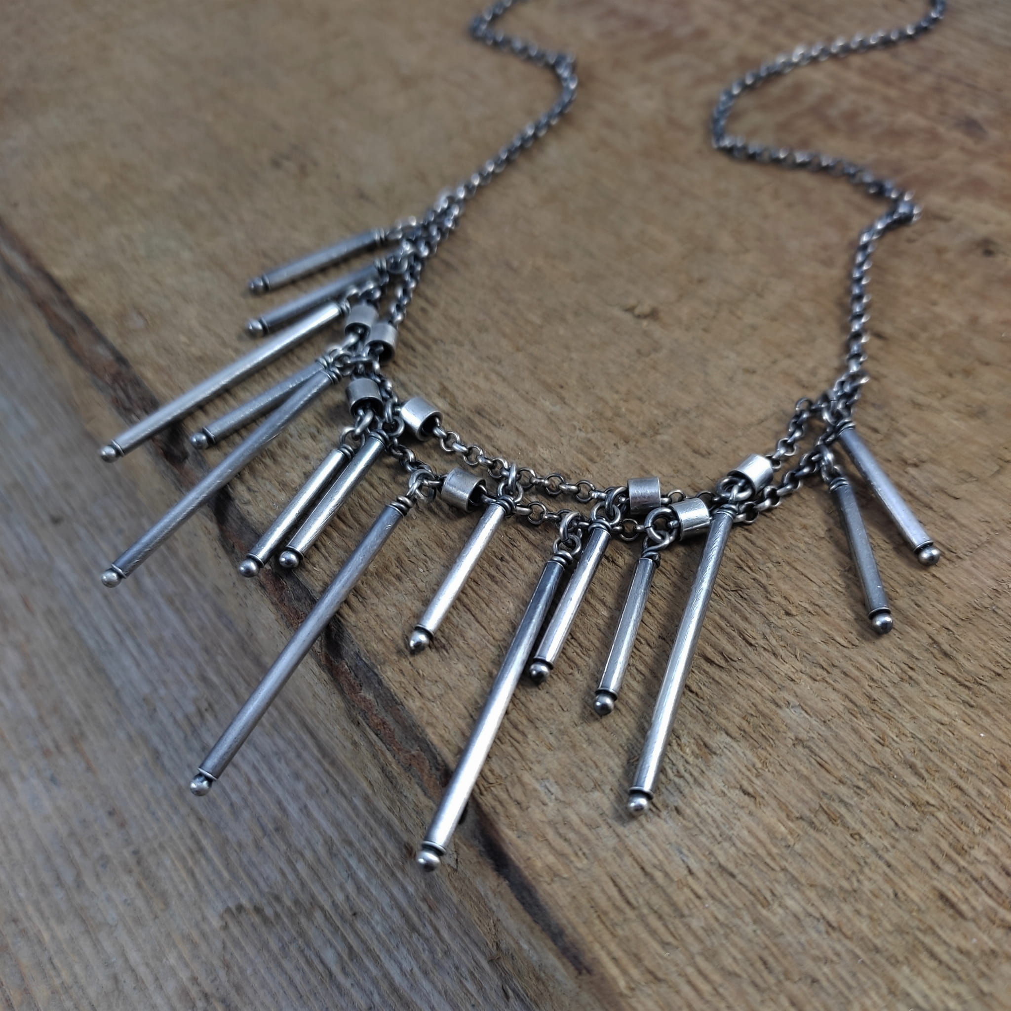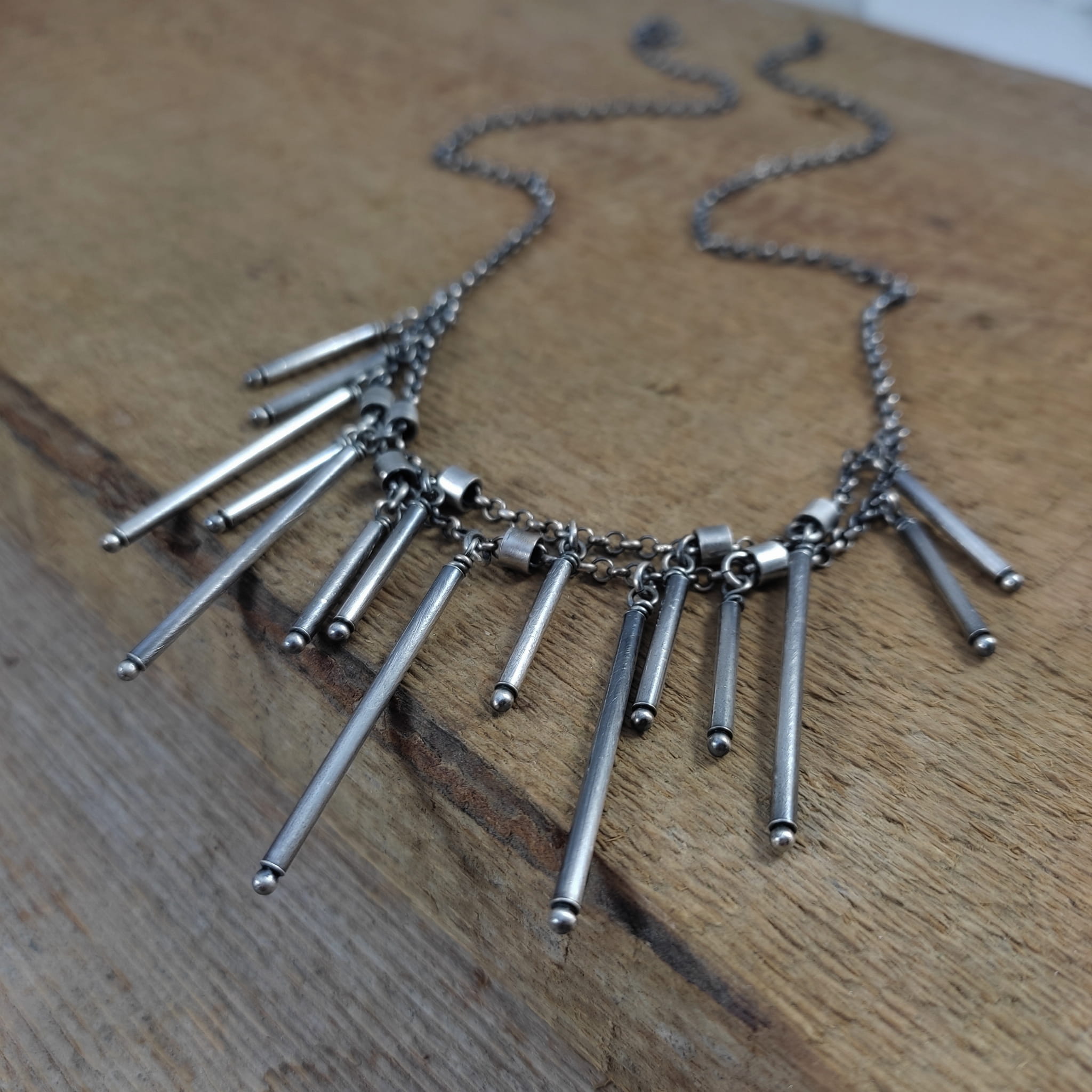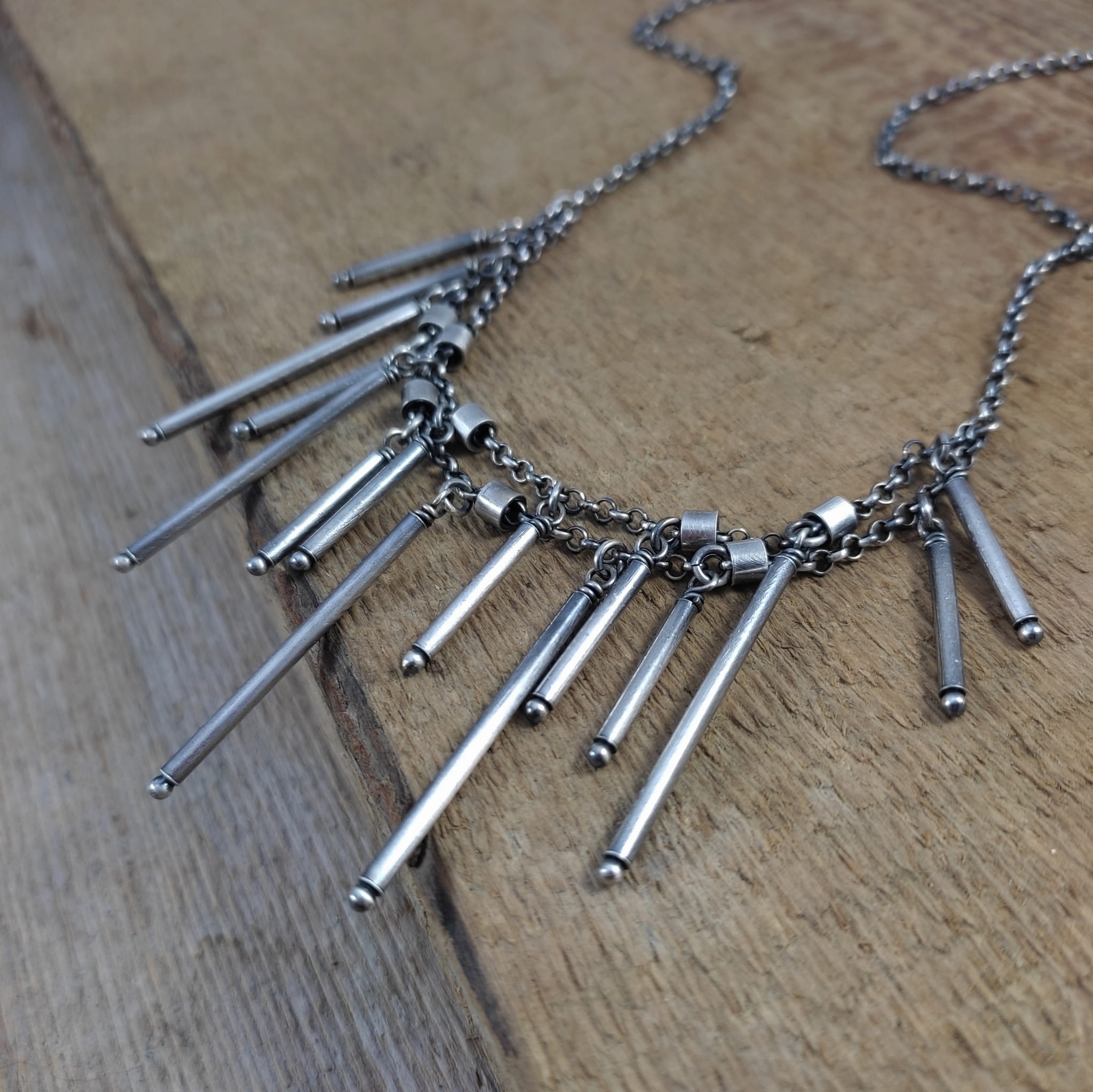 Naszyjnik wykonany ze srebra 925, oksydowanego i wypolerowanego.