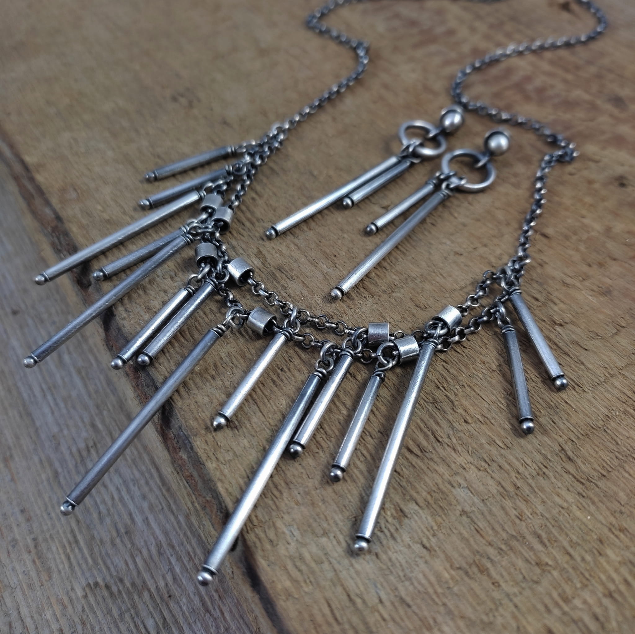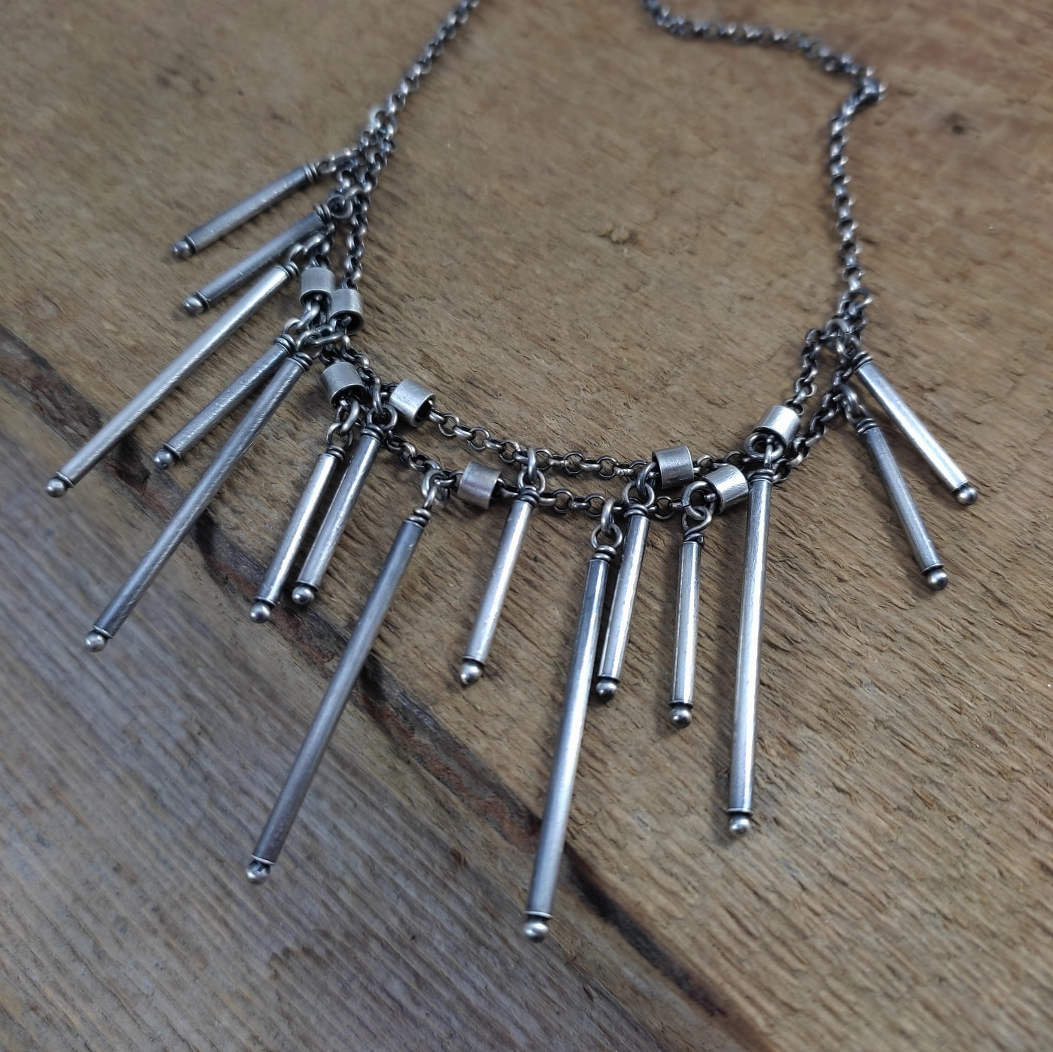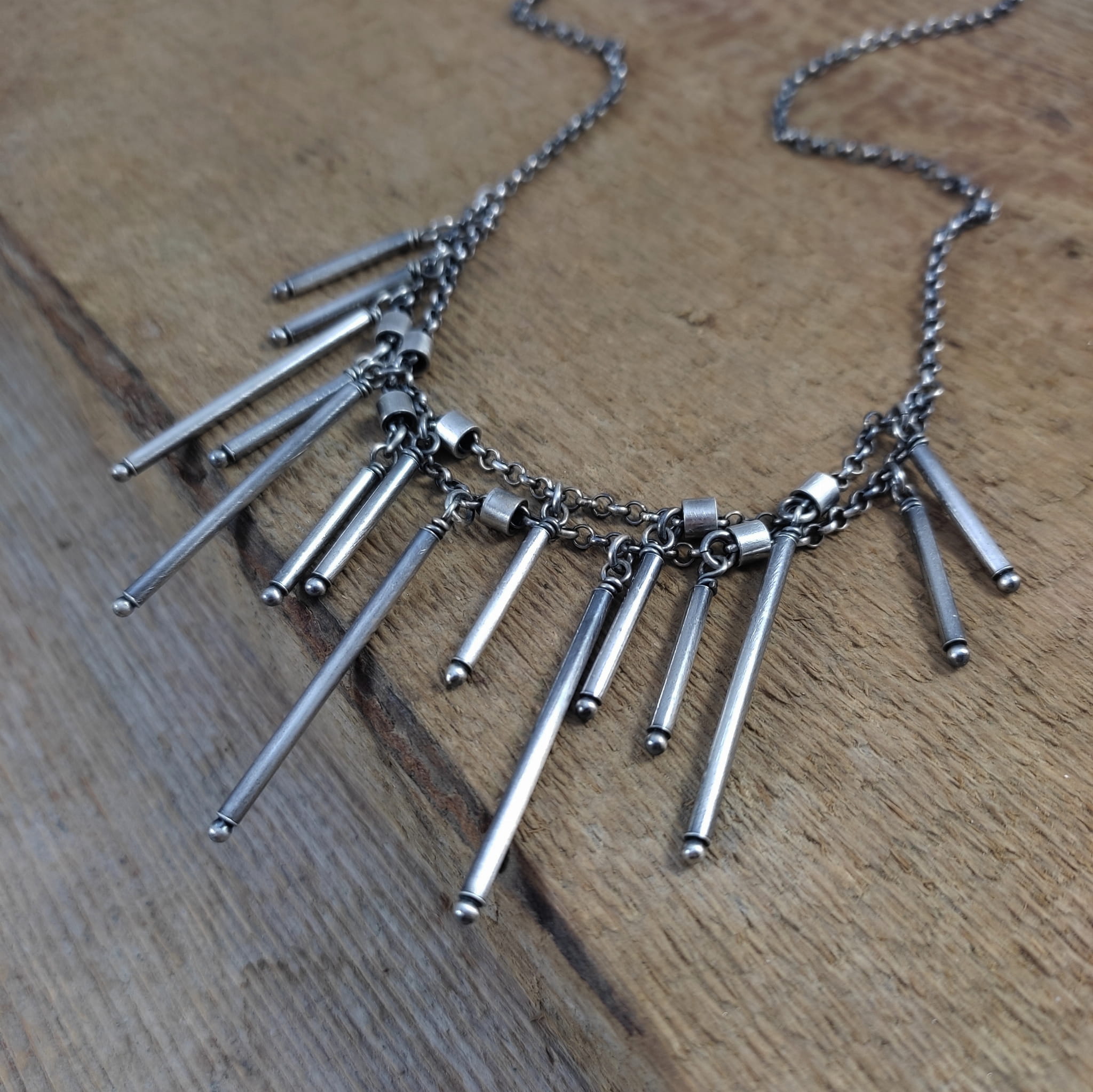 Naszyjnik wykonany ze srebra 925, oksydowanego i wypolerowanego.