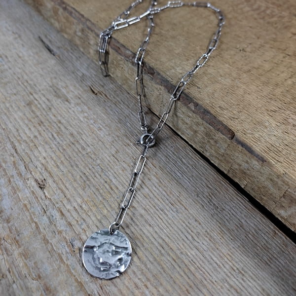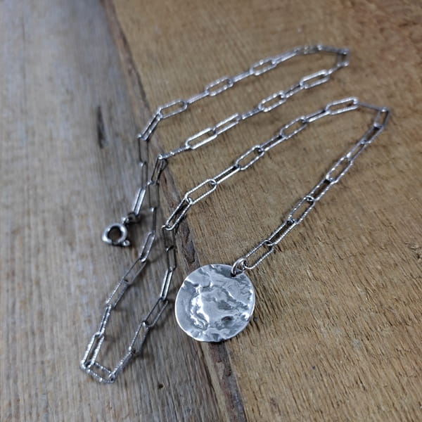 Delikatny naszyjnik wykonany ze srebra 925, oksydowanego i wypolerowanego (w tym blaszka 19 mm).