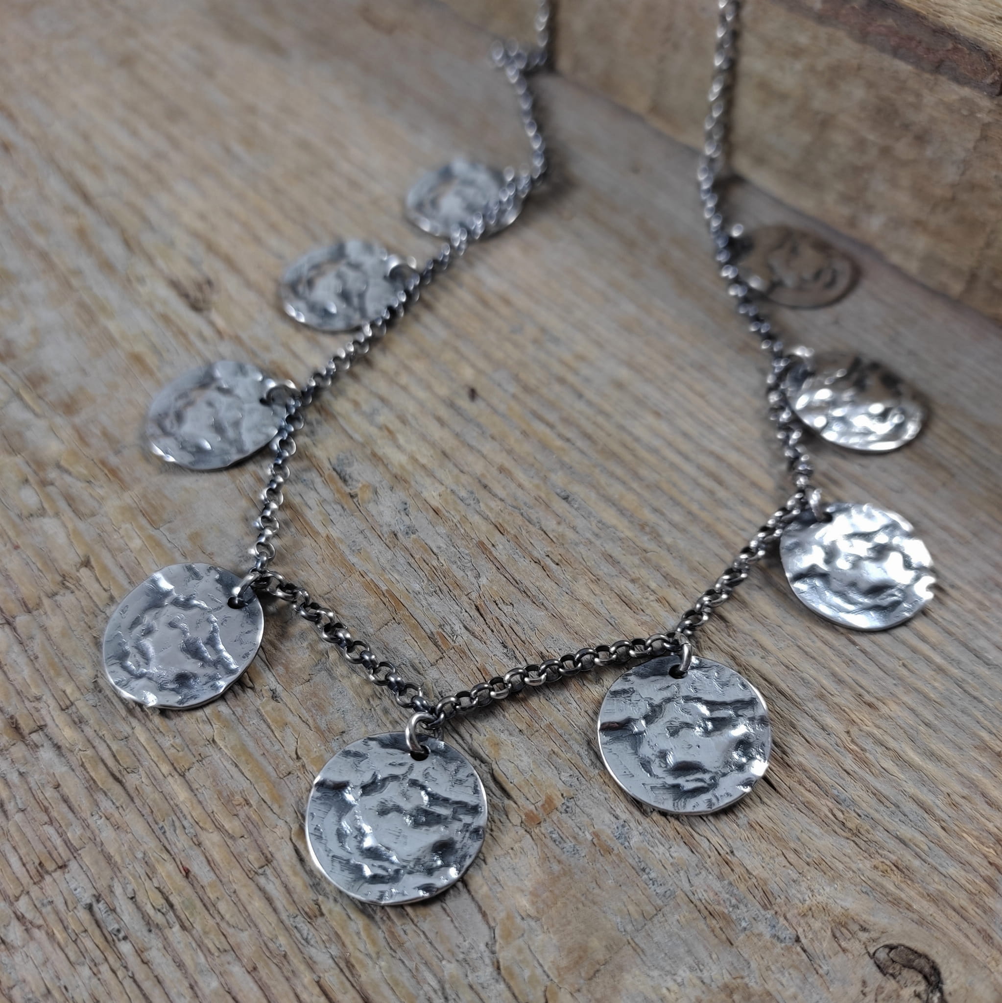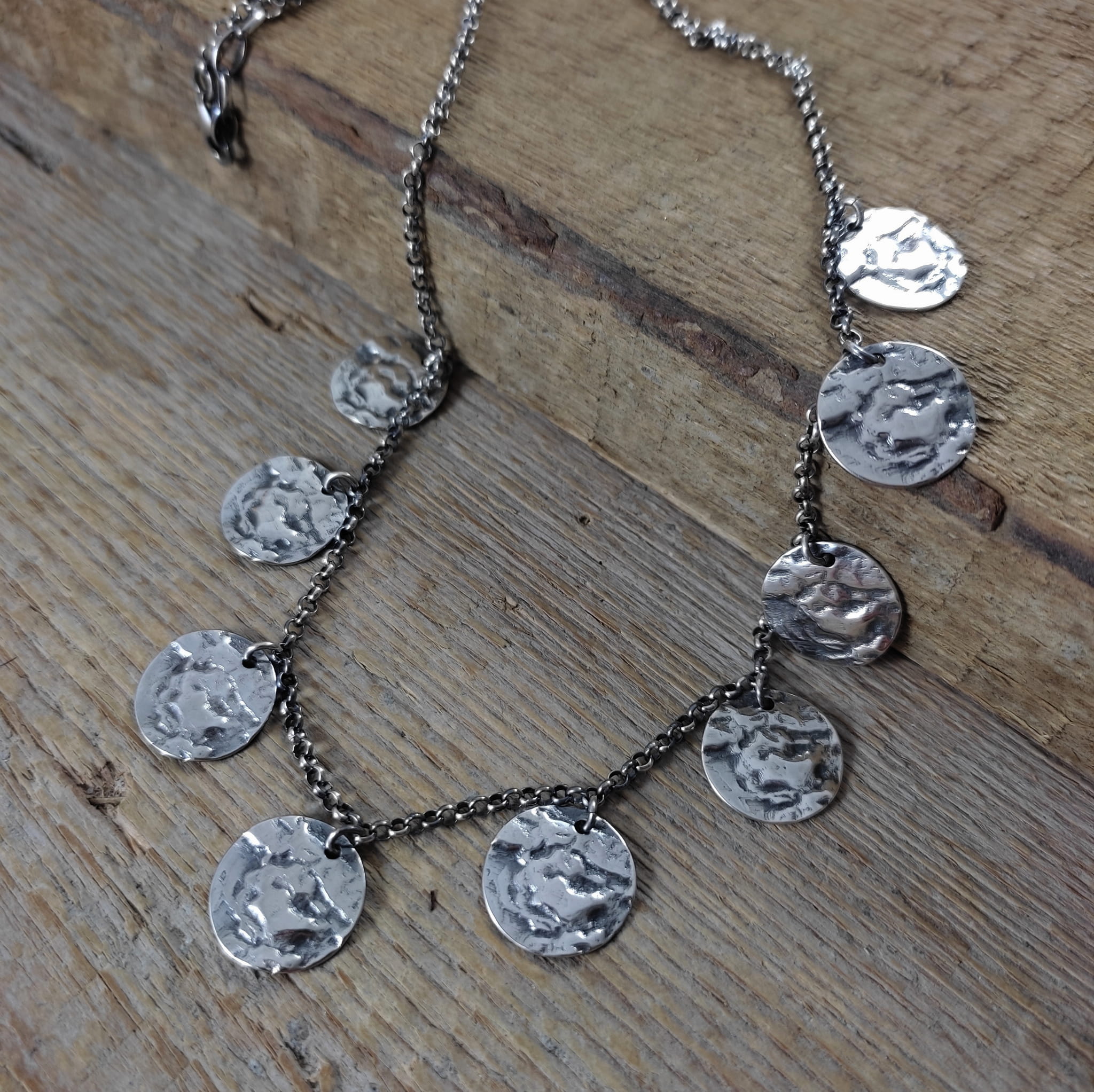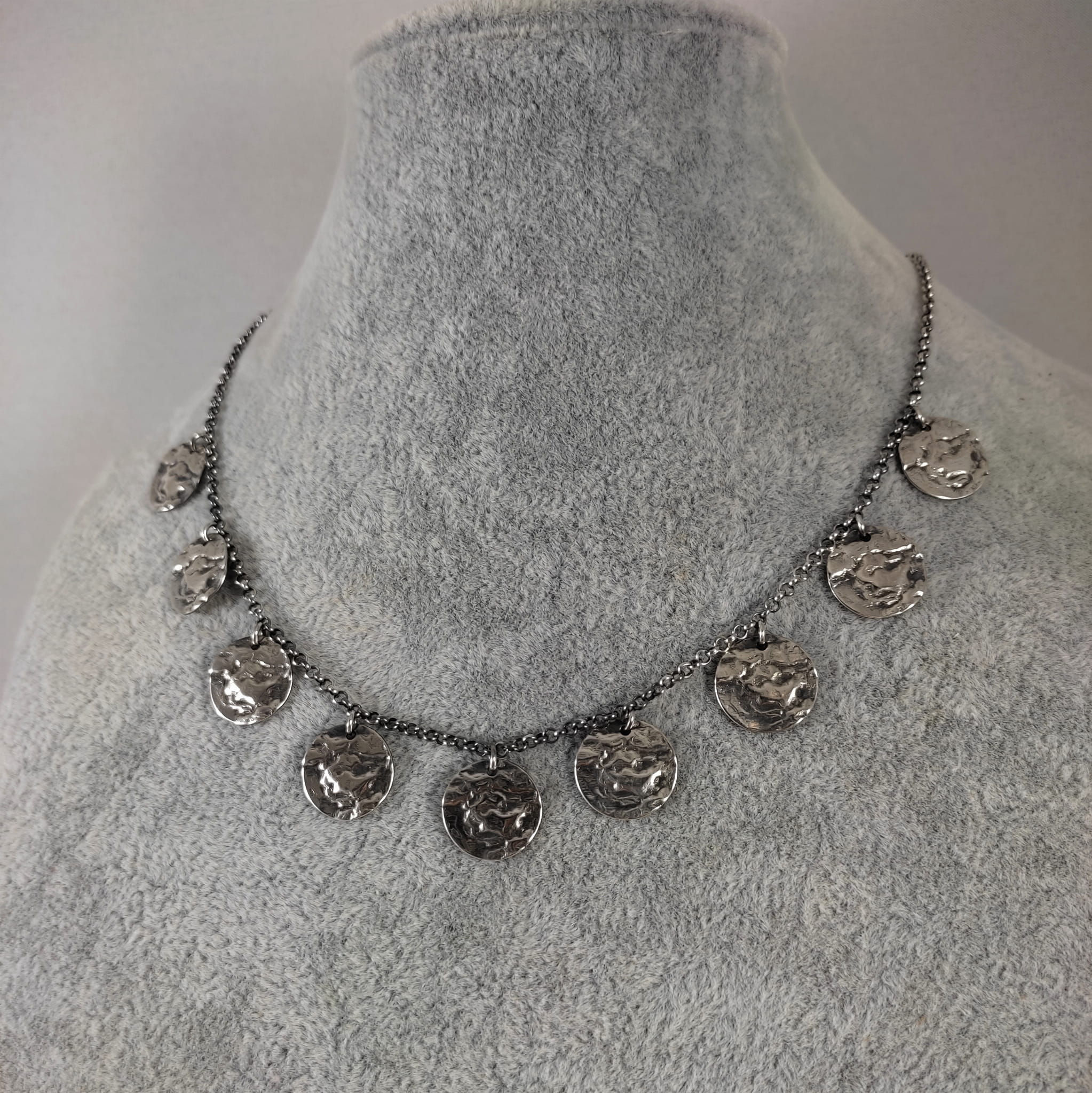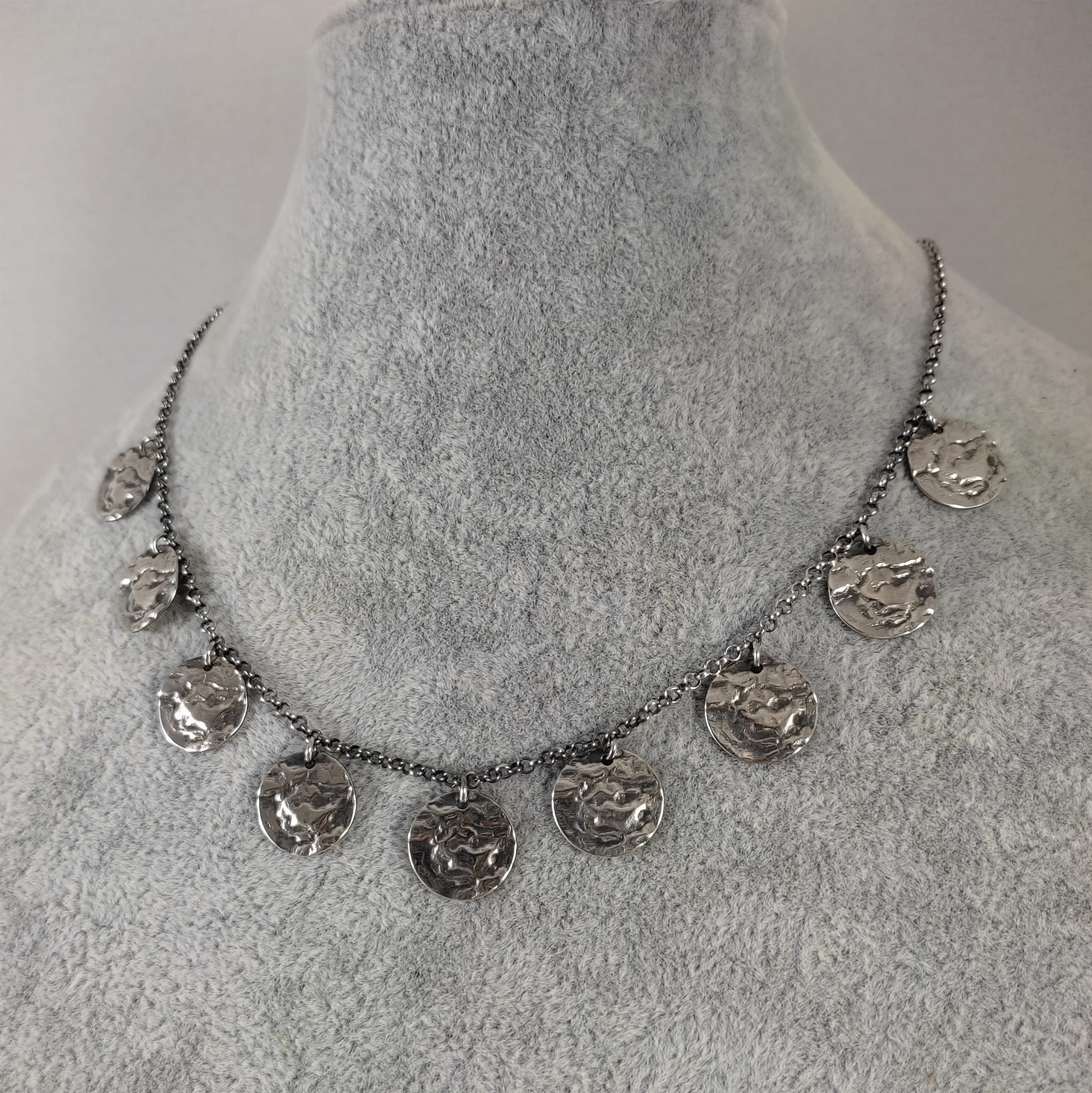 Naszyjnik wykonany ze srebra 925, oksydowanego i wypolerowanego (w tym blaszki 14 mm).