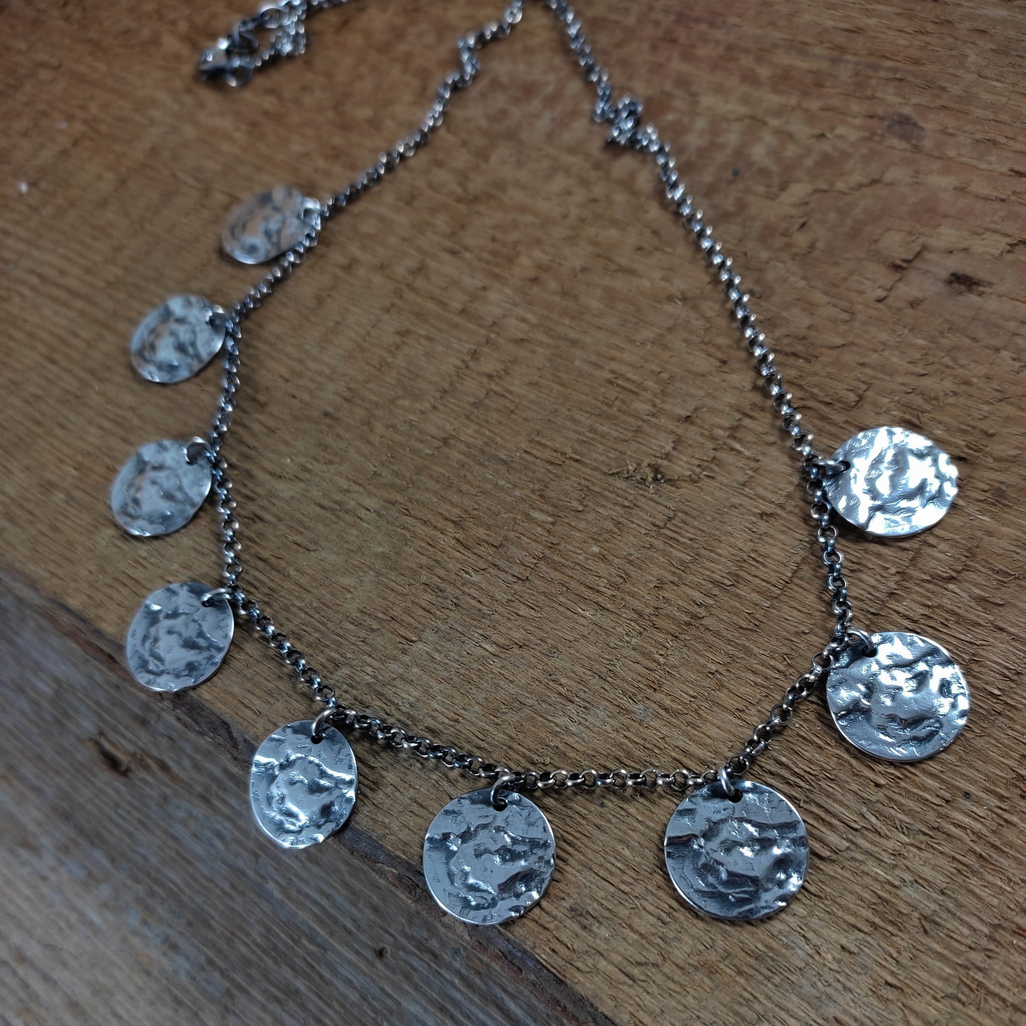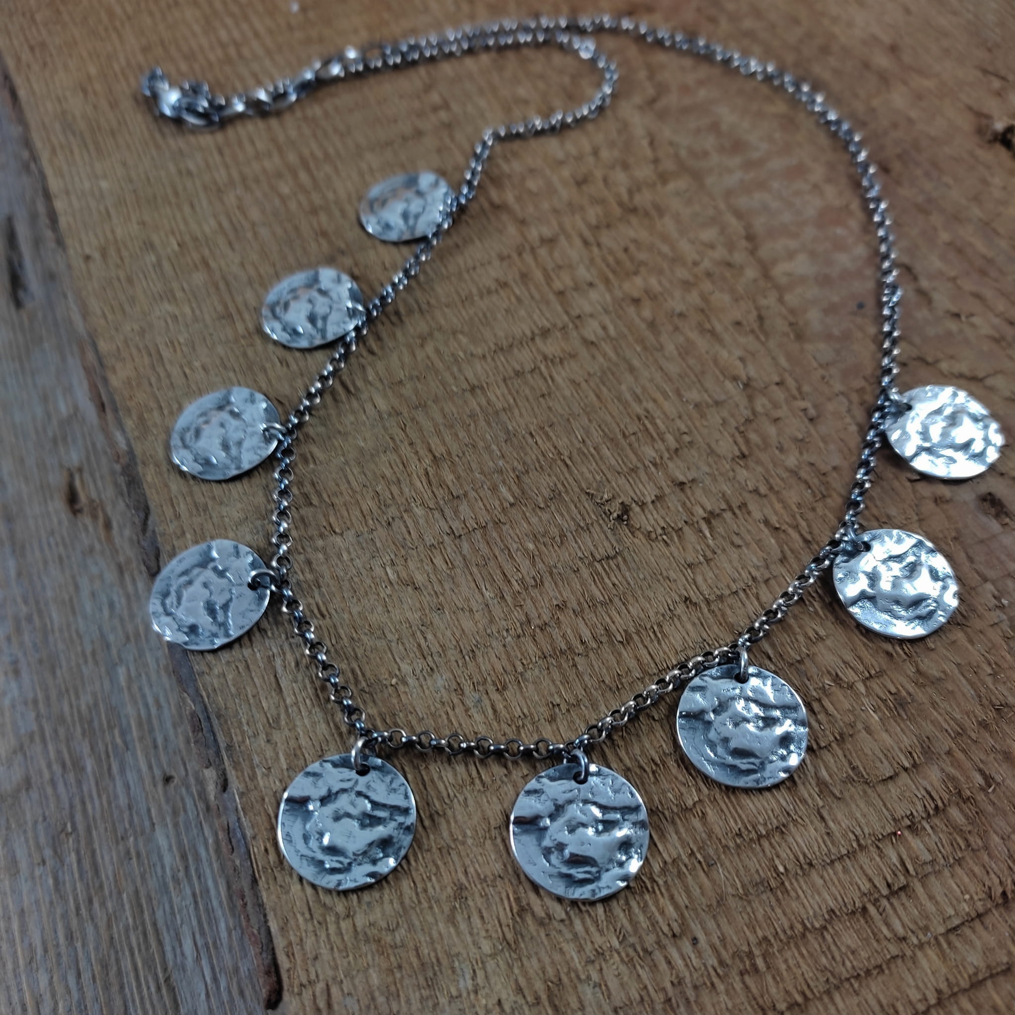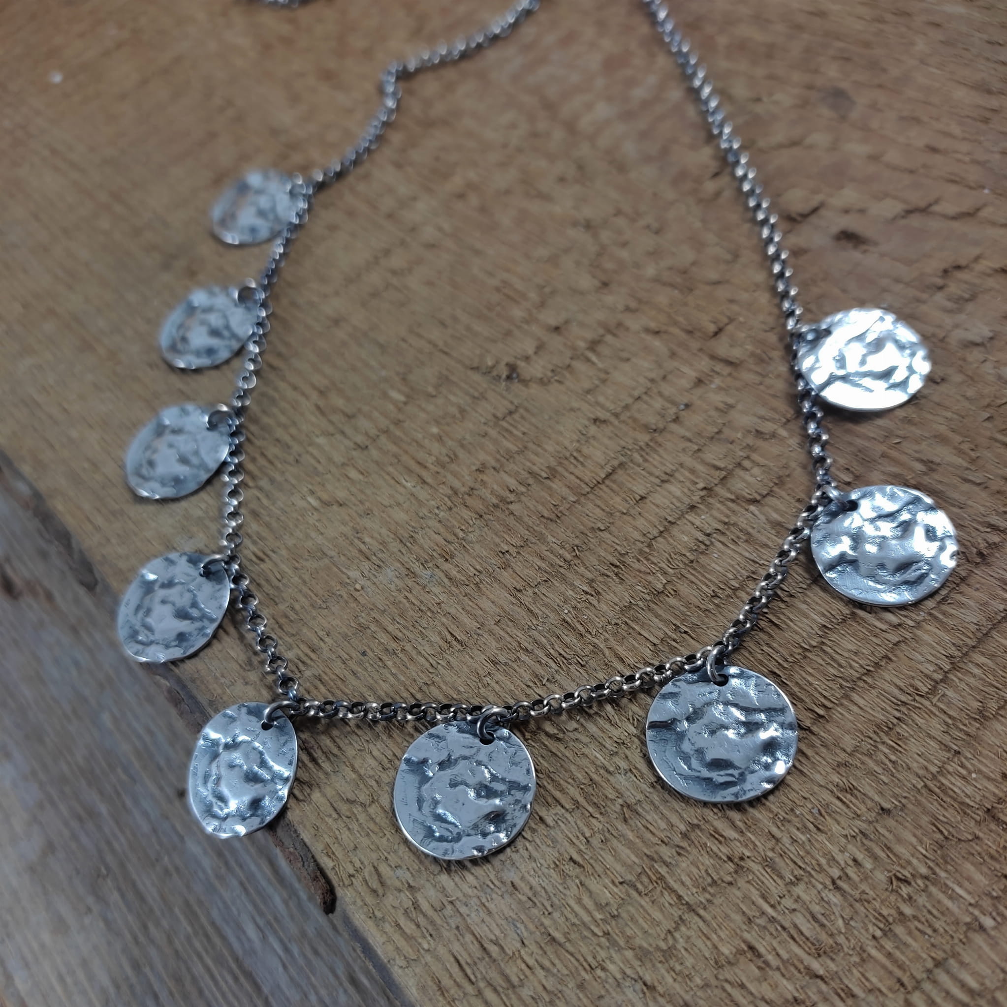 Naszyjnik wykonany ze srebra 925, oksydowanego i wypolerowanego (w tym blaszki 14 mm).