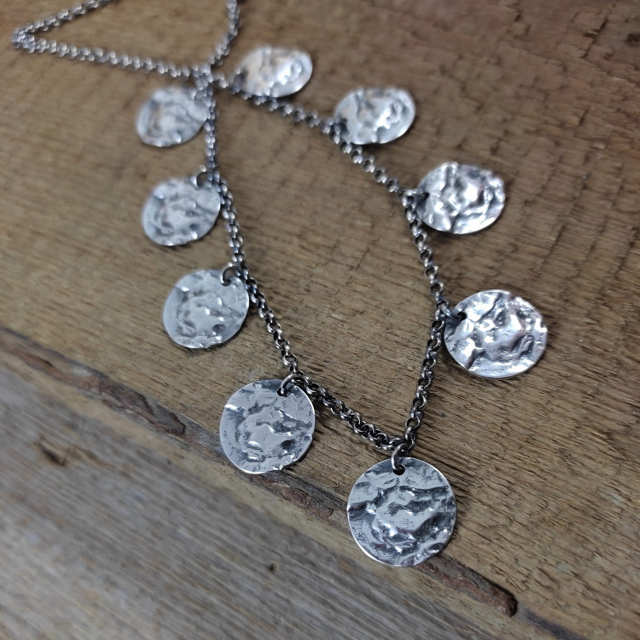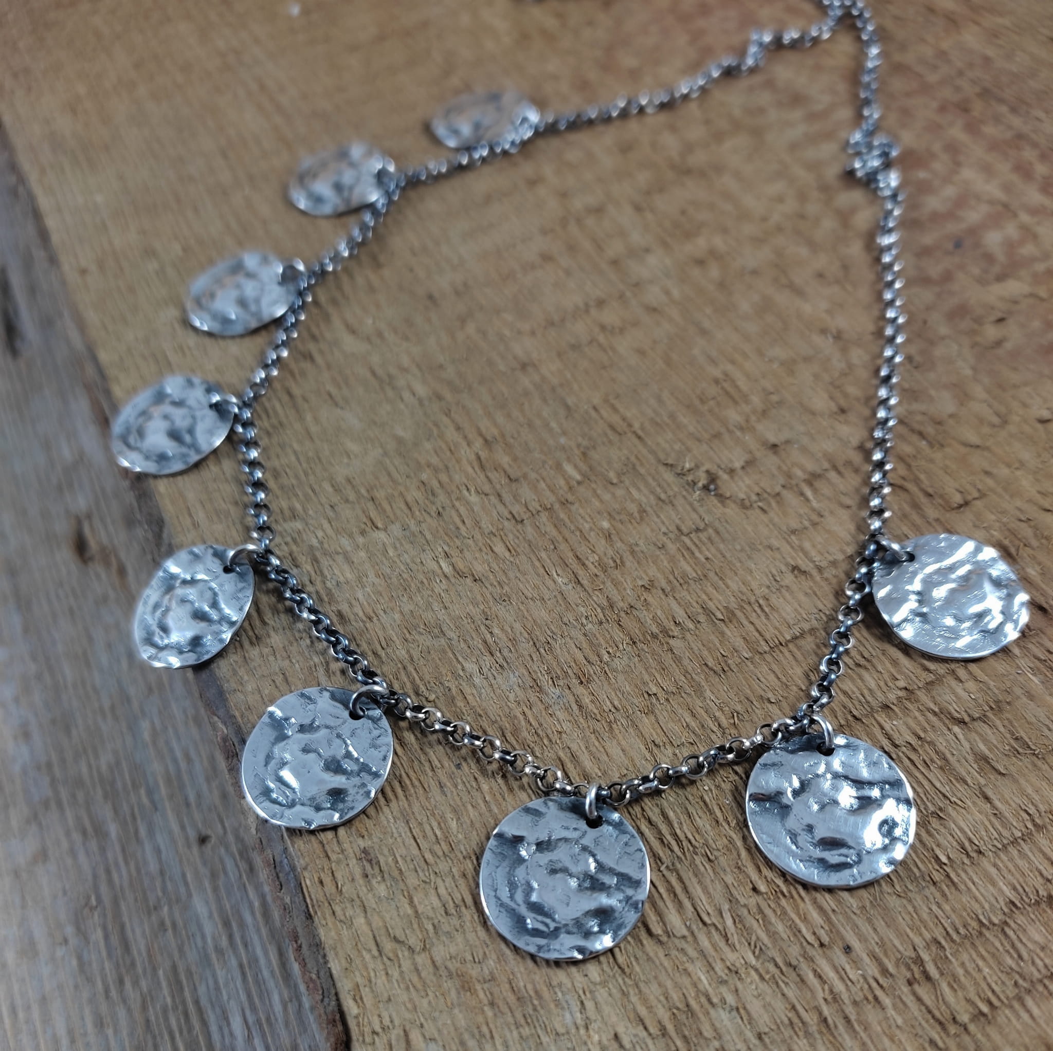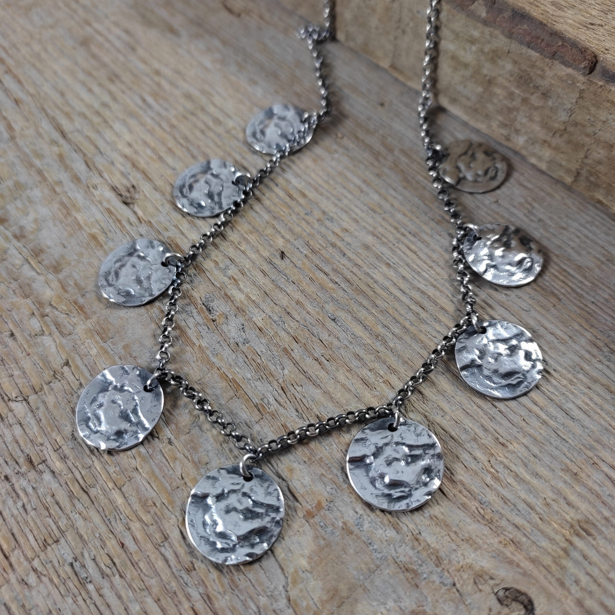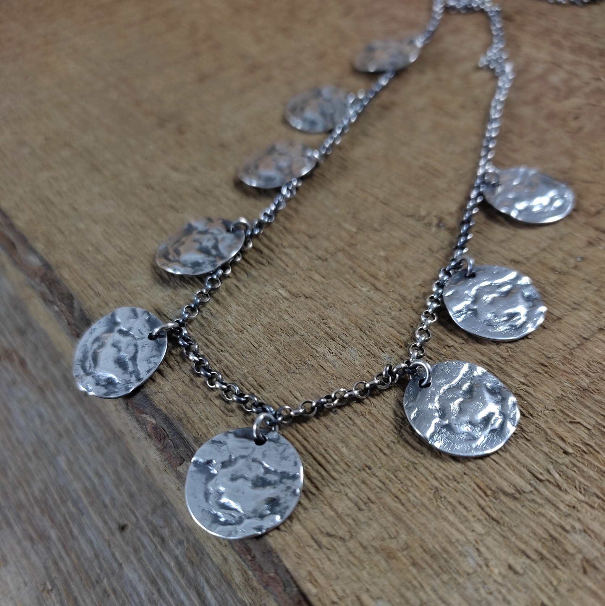 Naszyjnik wykonany ze srebra 925, oksydowanego i wypolerowanego (w tym blaszki 14 mm).