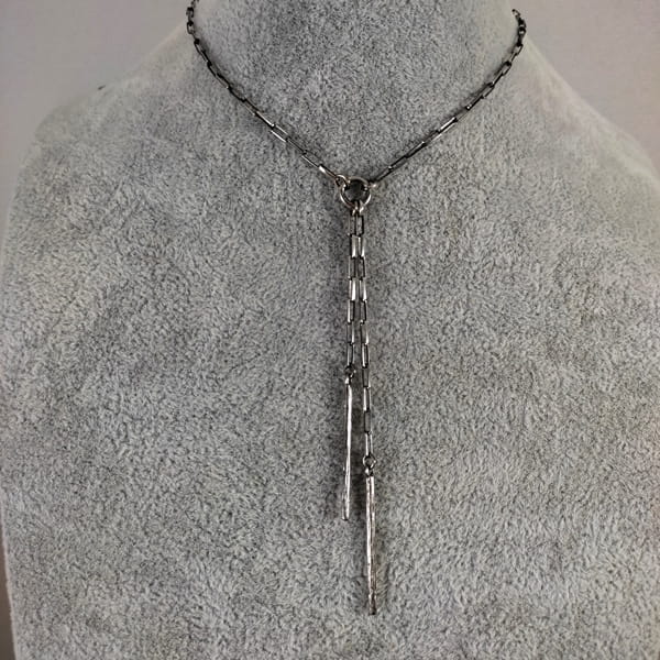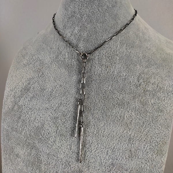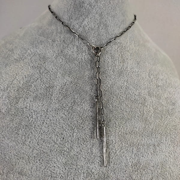 Naszyjnik wykonany ze srebra 925, oksydowanego i wypolerowanego.