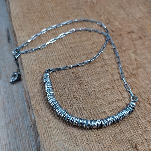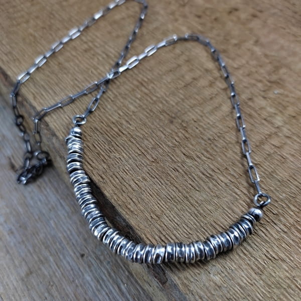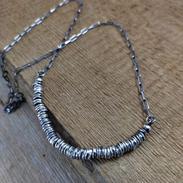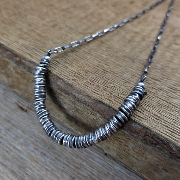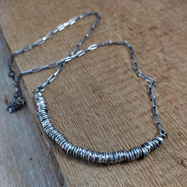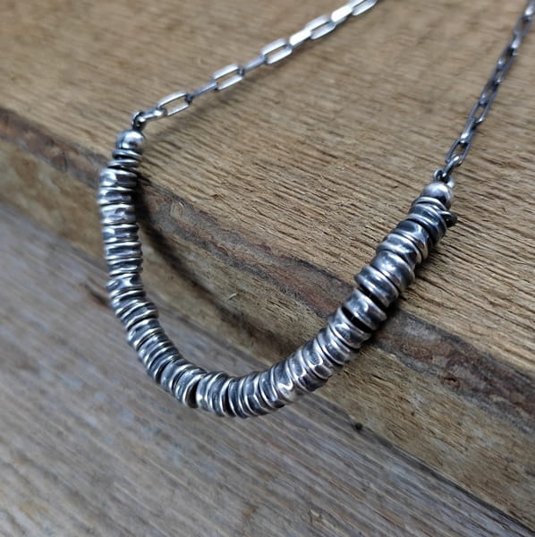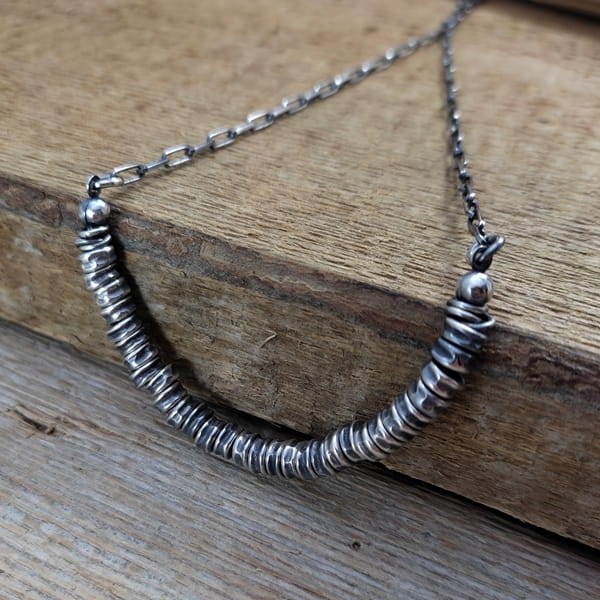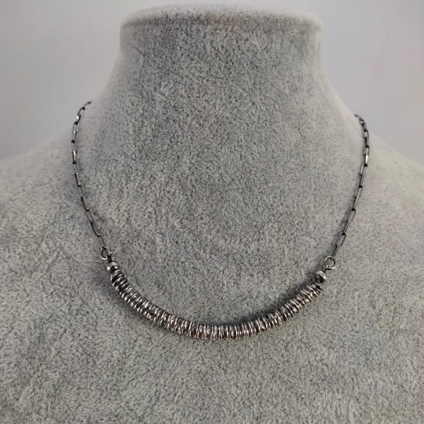 Naszyjnik wykonany ze srebra 925, oksydowanego i wypolerowanego.