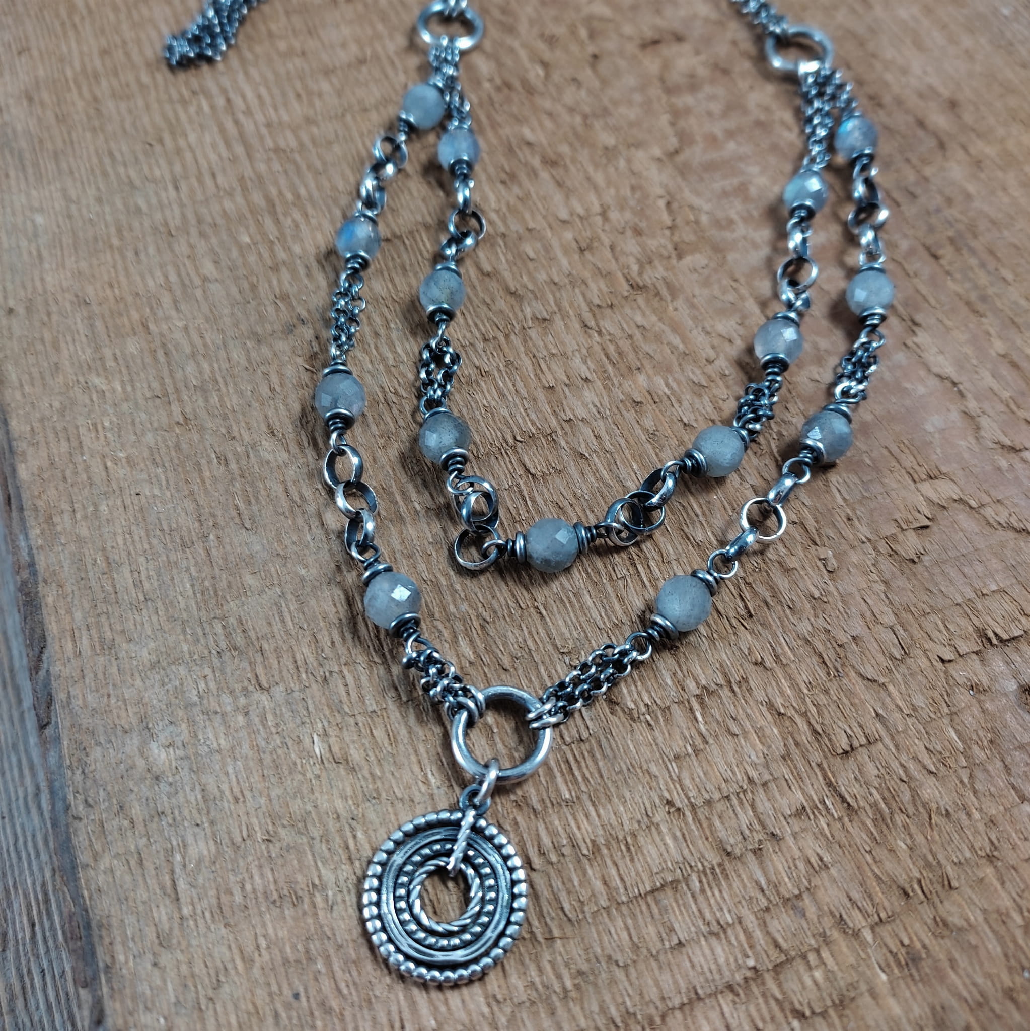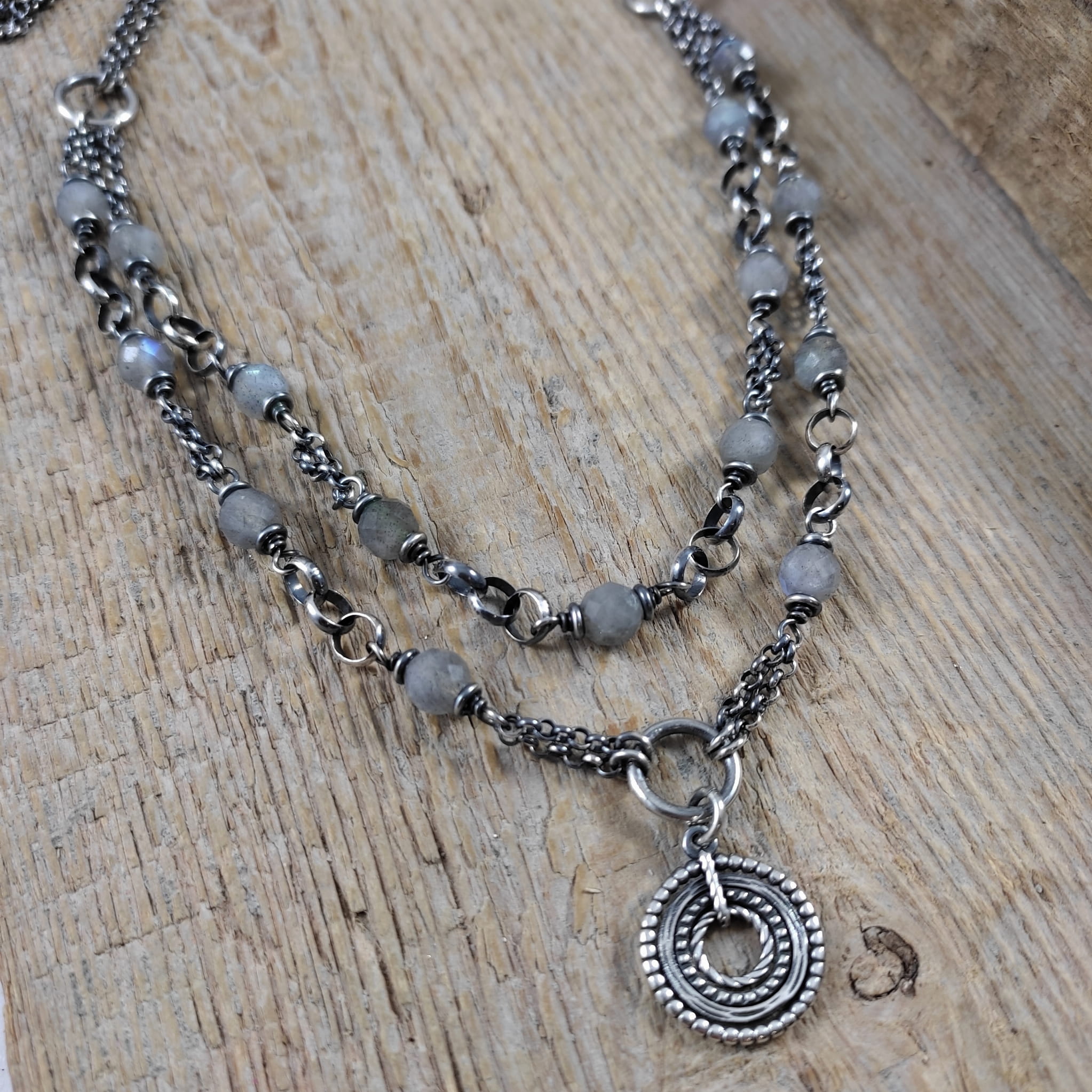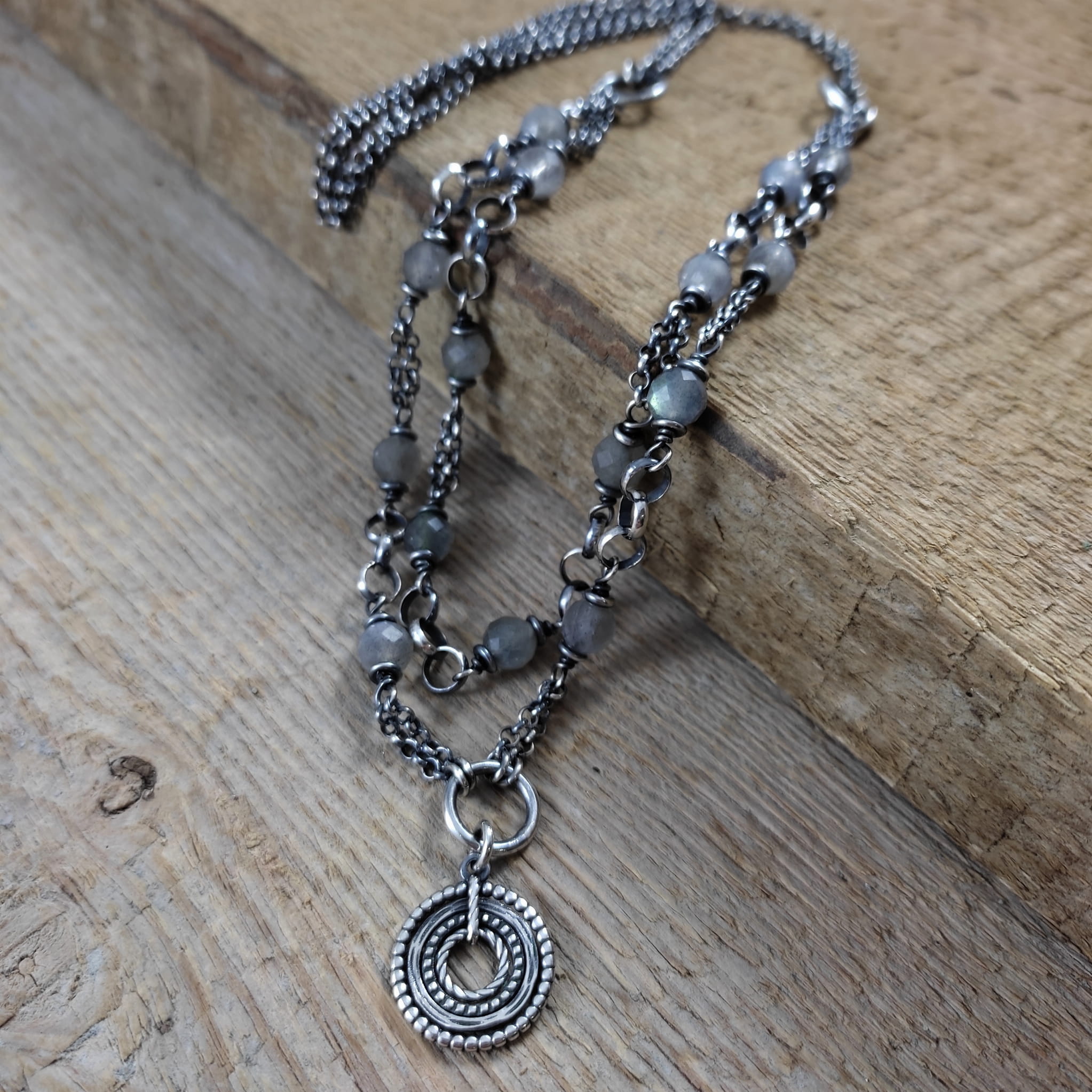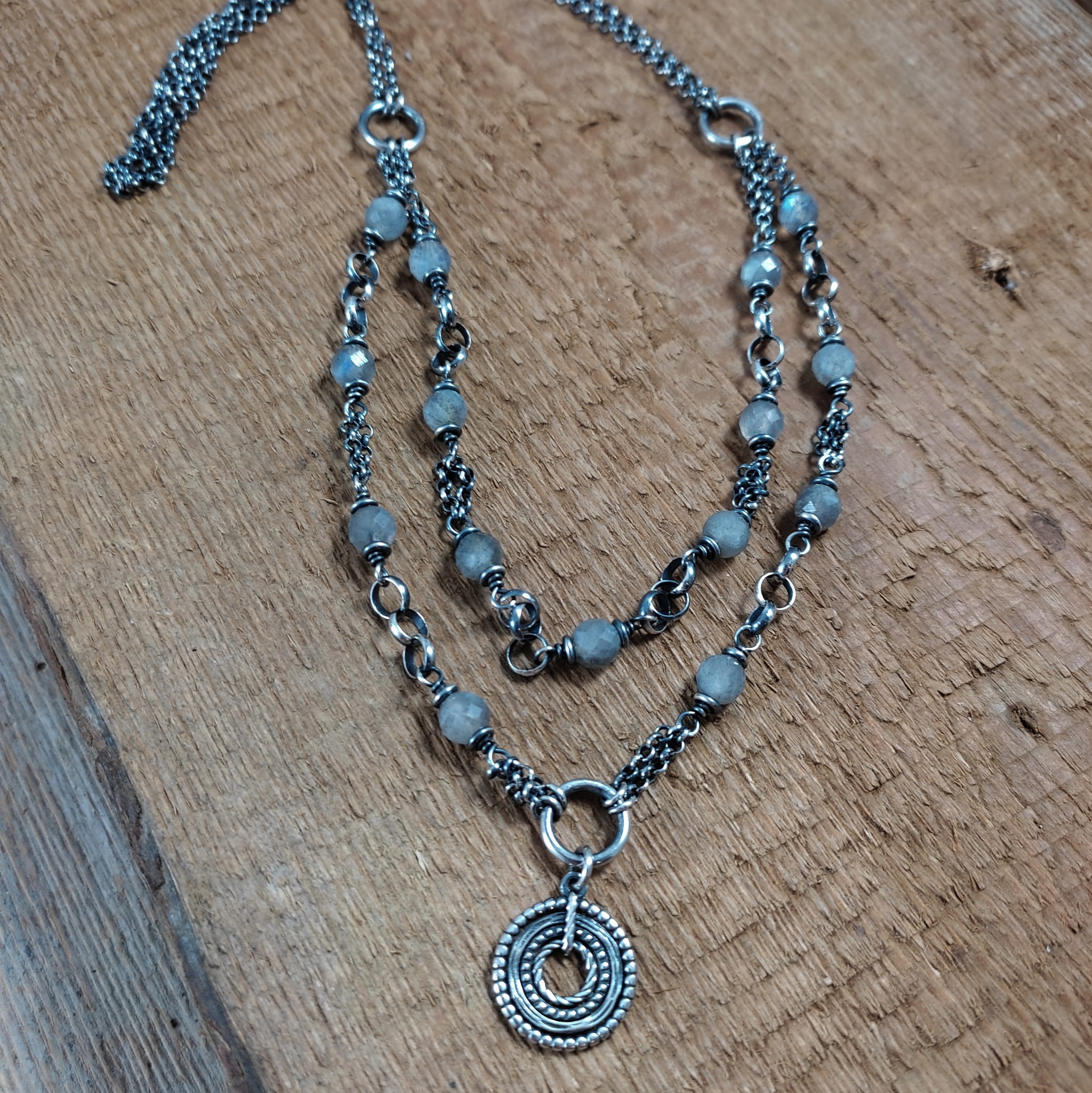 Naszyjnik - labradoryt z dwoma łańcuszkami