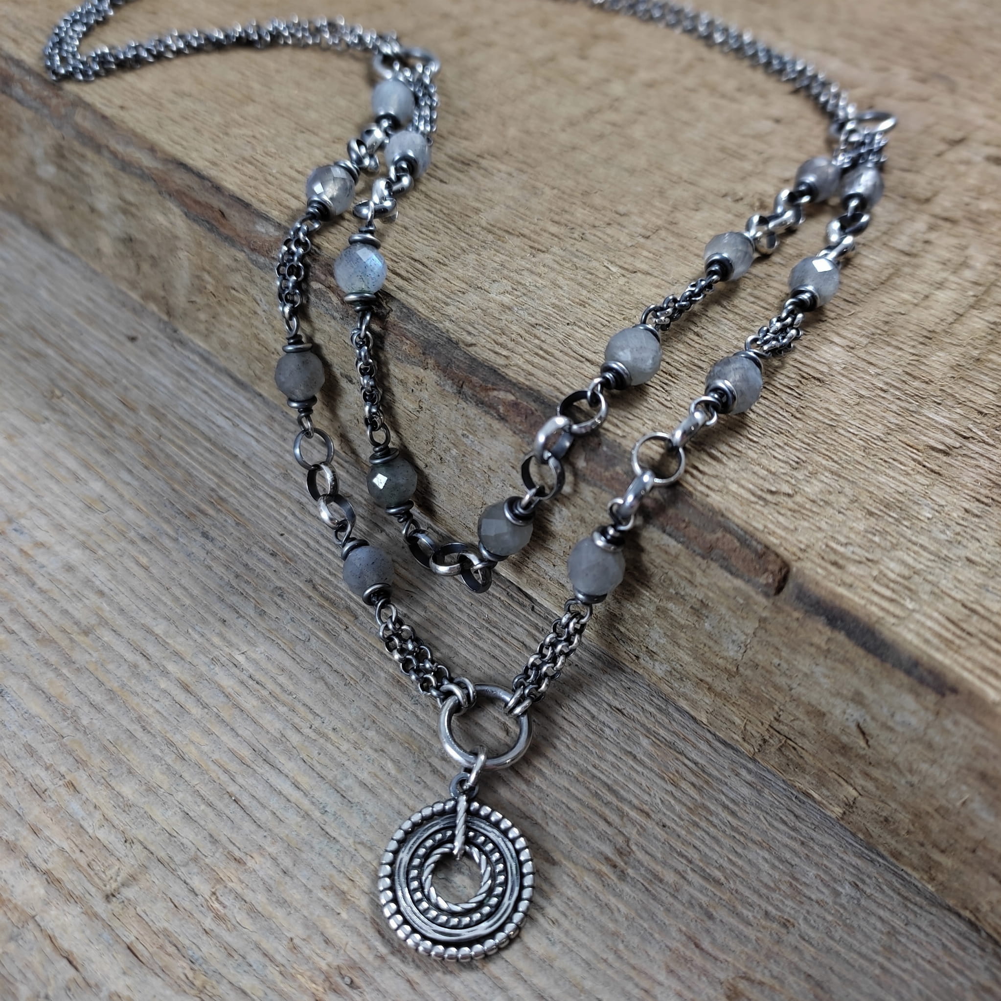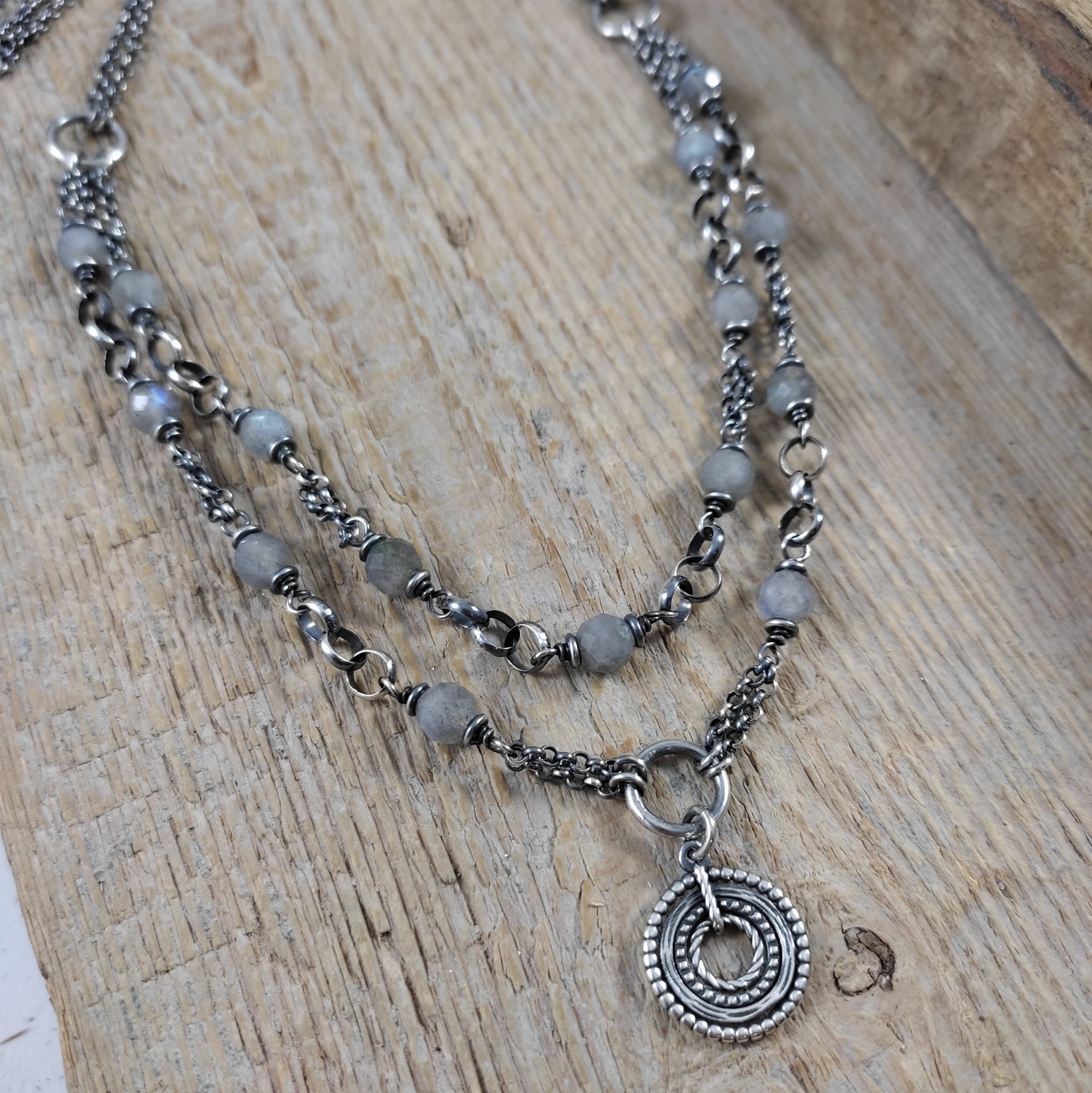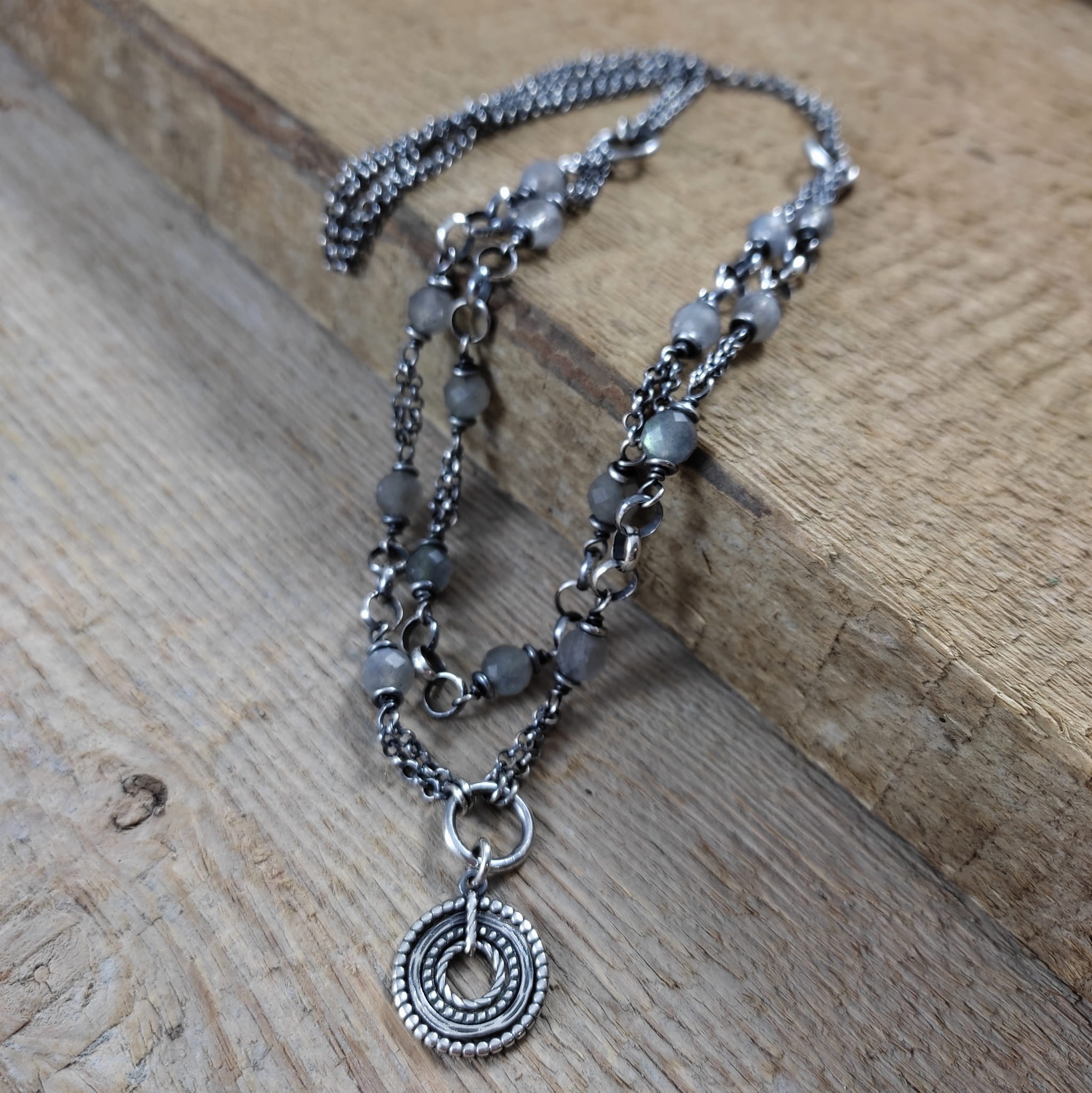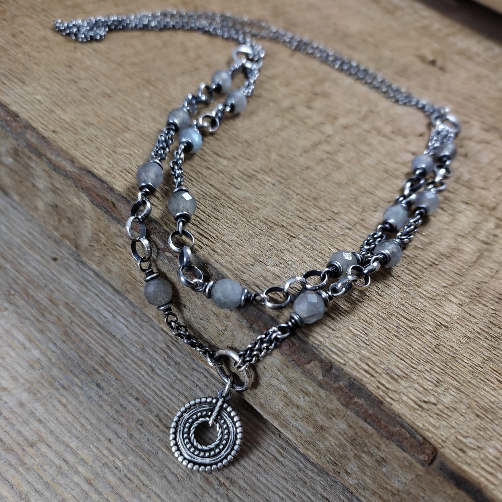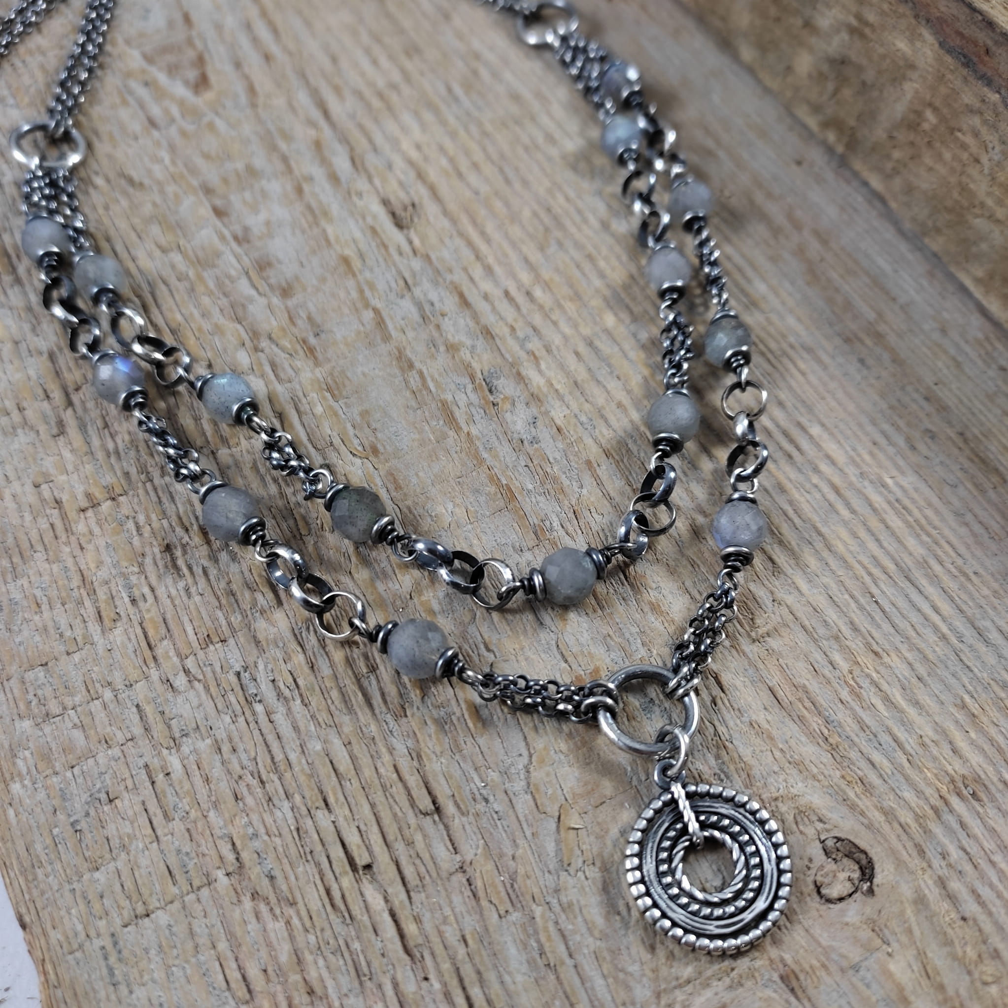Naszyjnik - labradoryt z dwoma łańcuszkami
