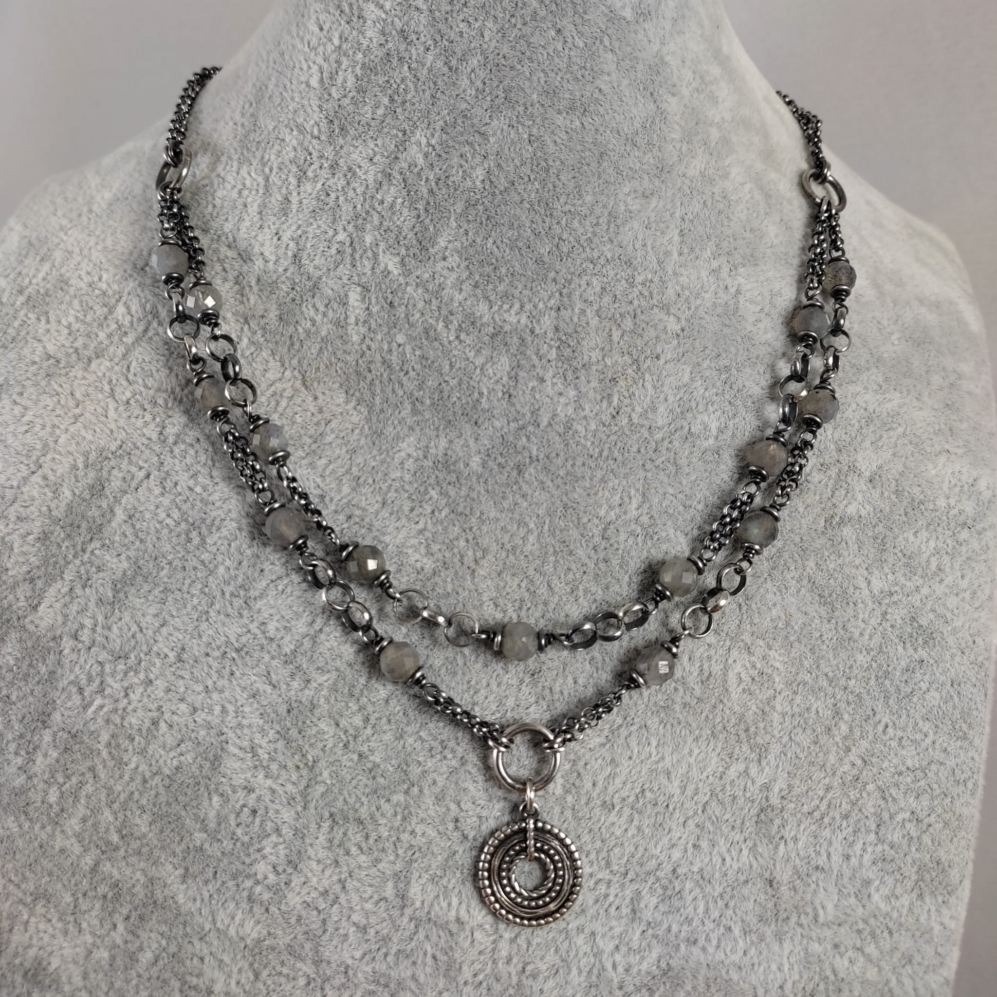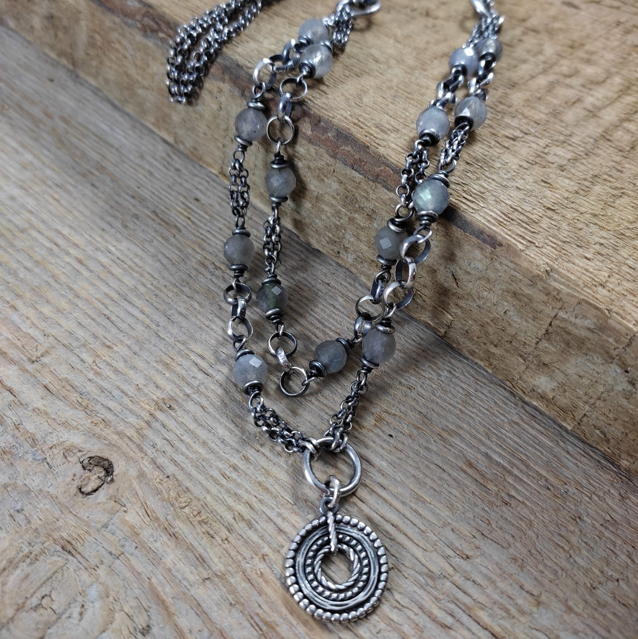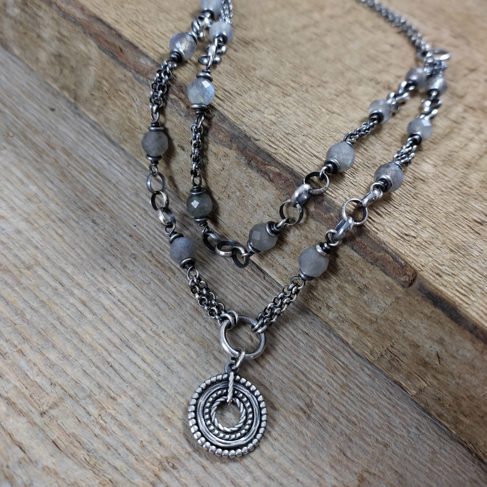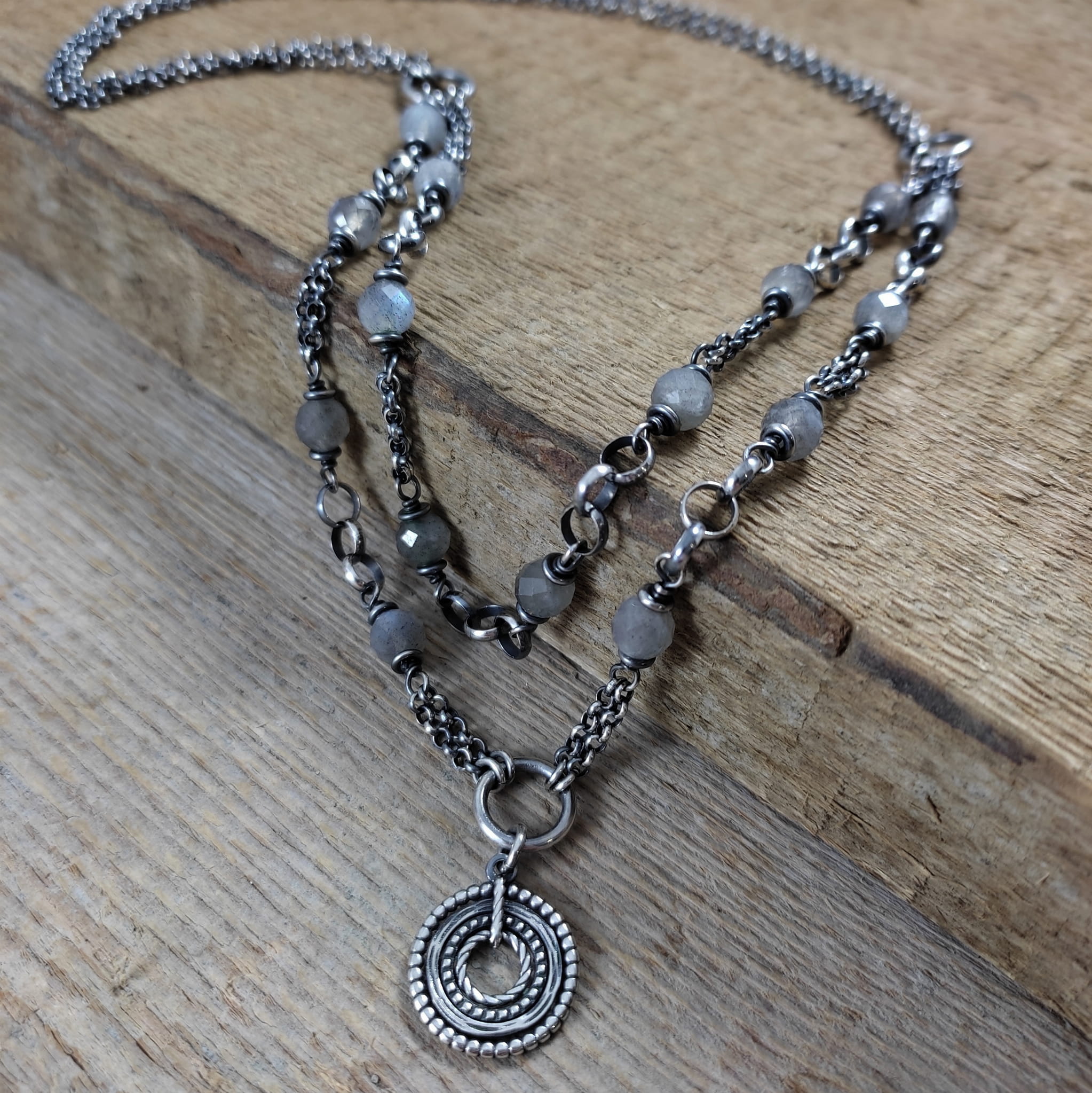 Naszyjnik - labradoryt z dwoma łańcuszkami