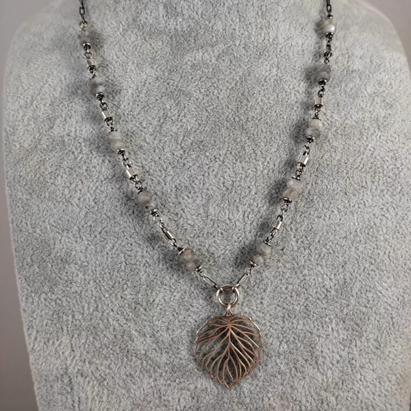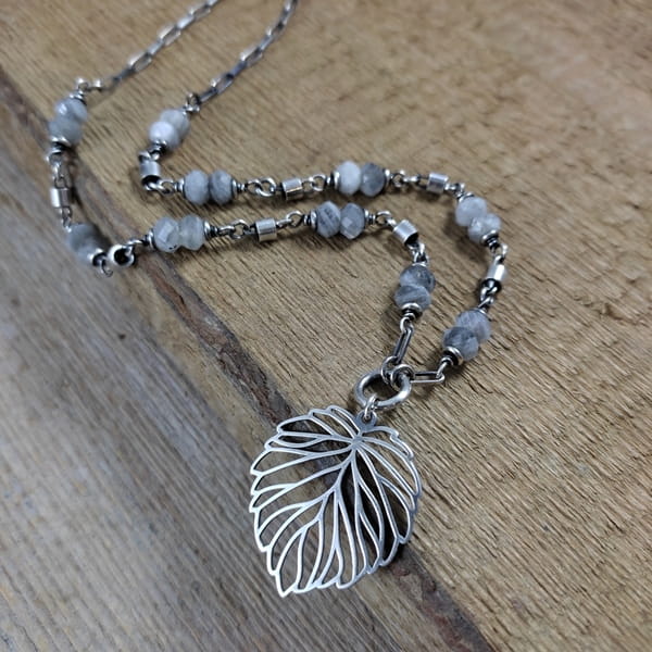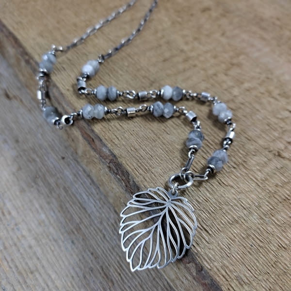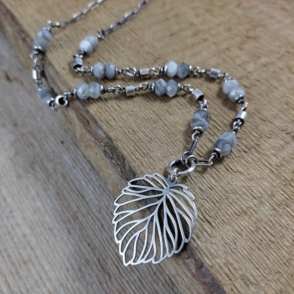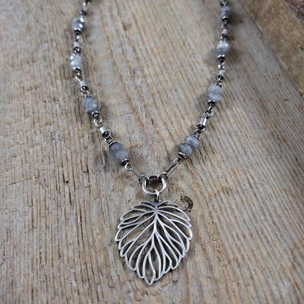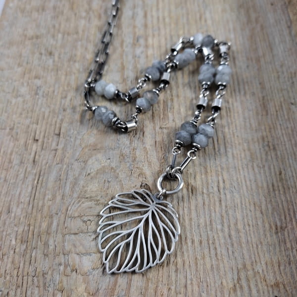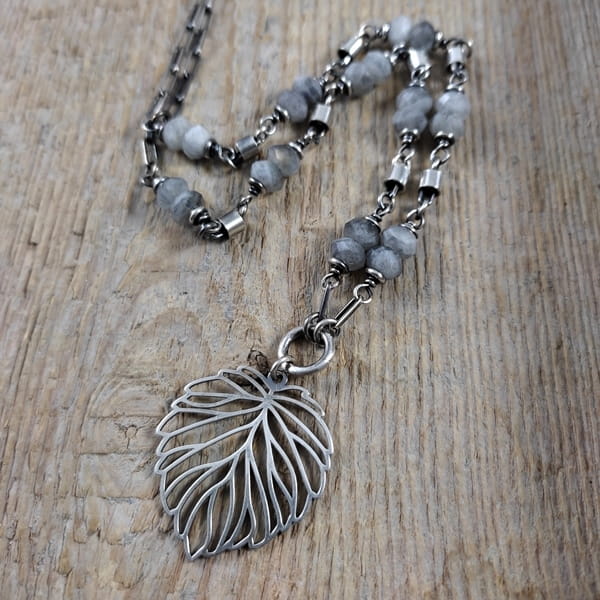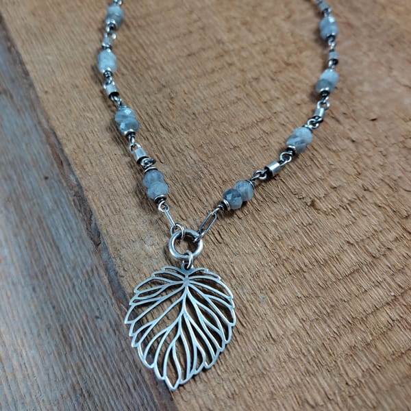 Naszyjnik wykonany z fasetowanych oponek labradorytu 6 mm. Całość wykończona w srebrze 925, oksydowanym i wypolerowanym.