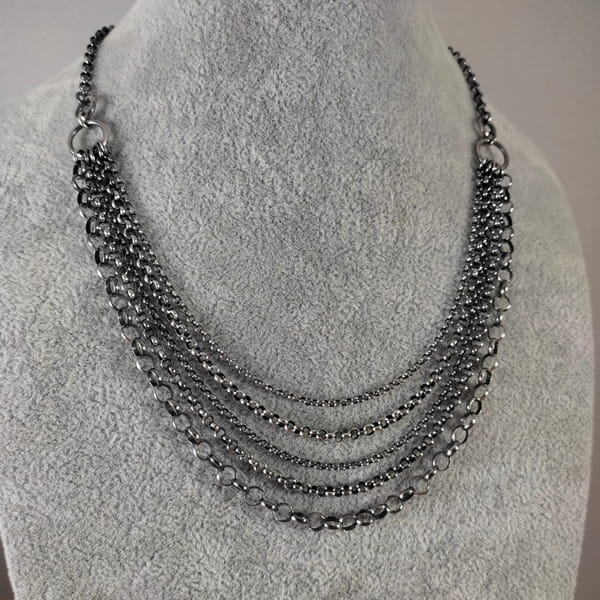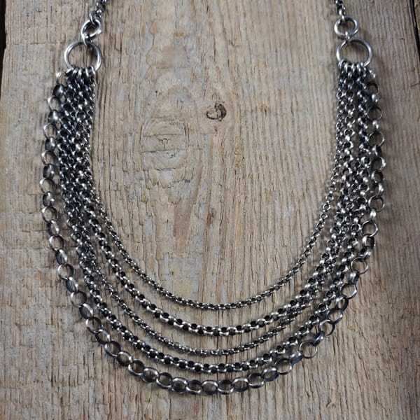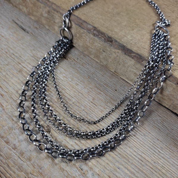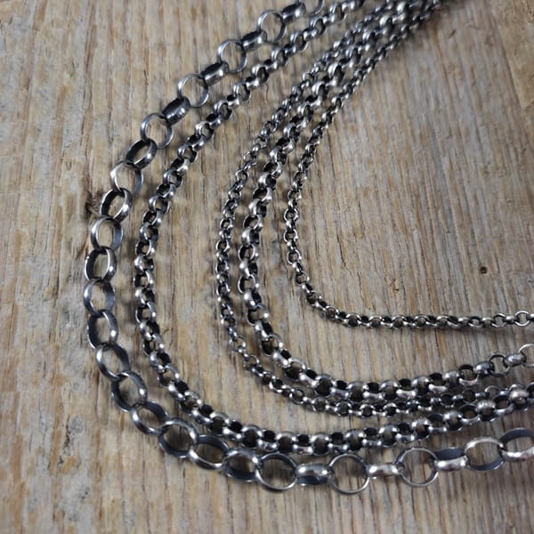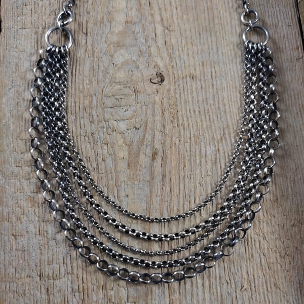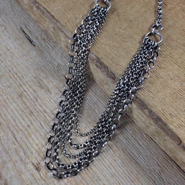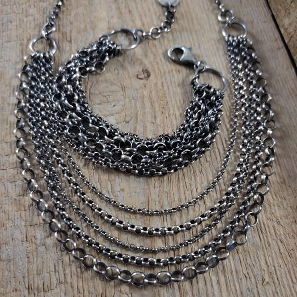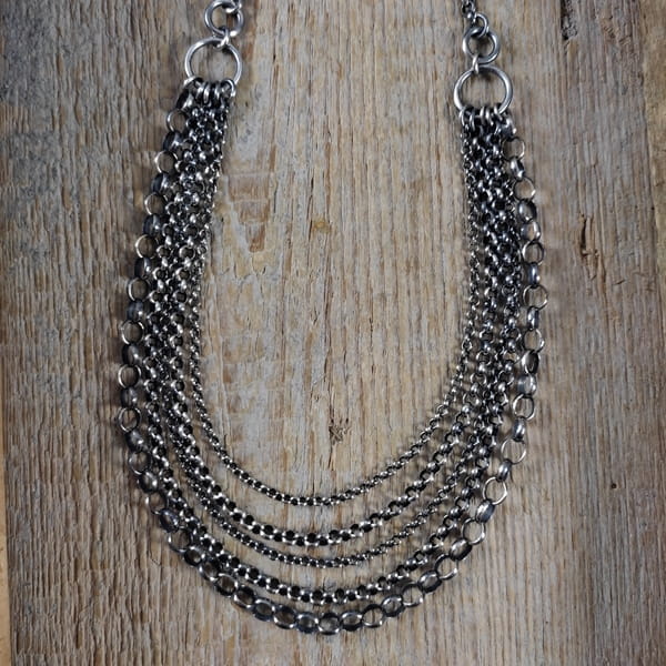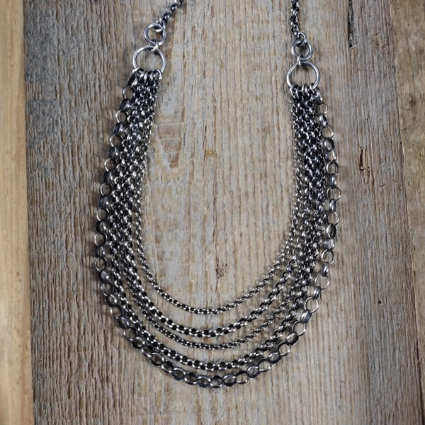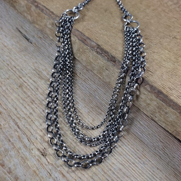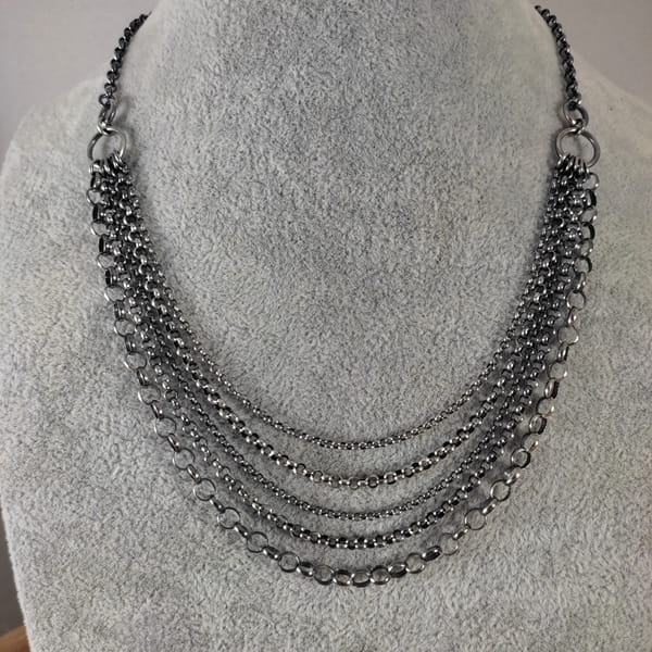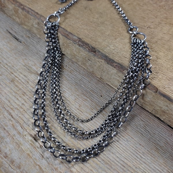 Naszyjnik wykonany ze srebra 925, oksydowanego i wypolerowanego.