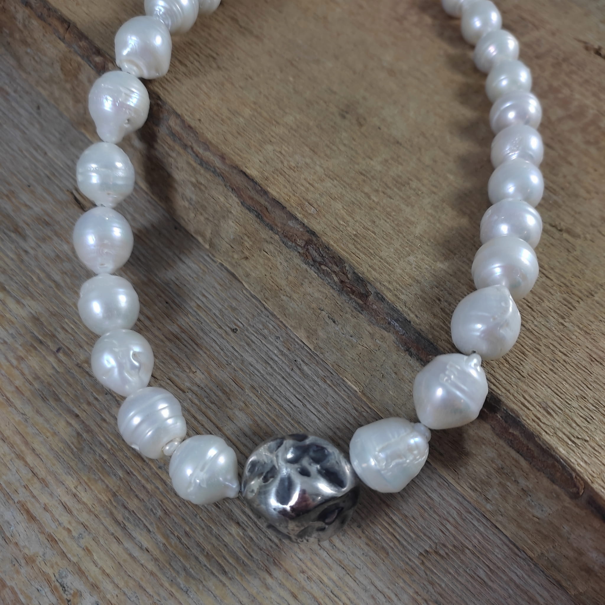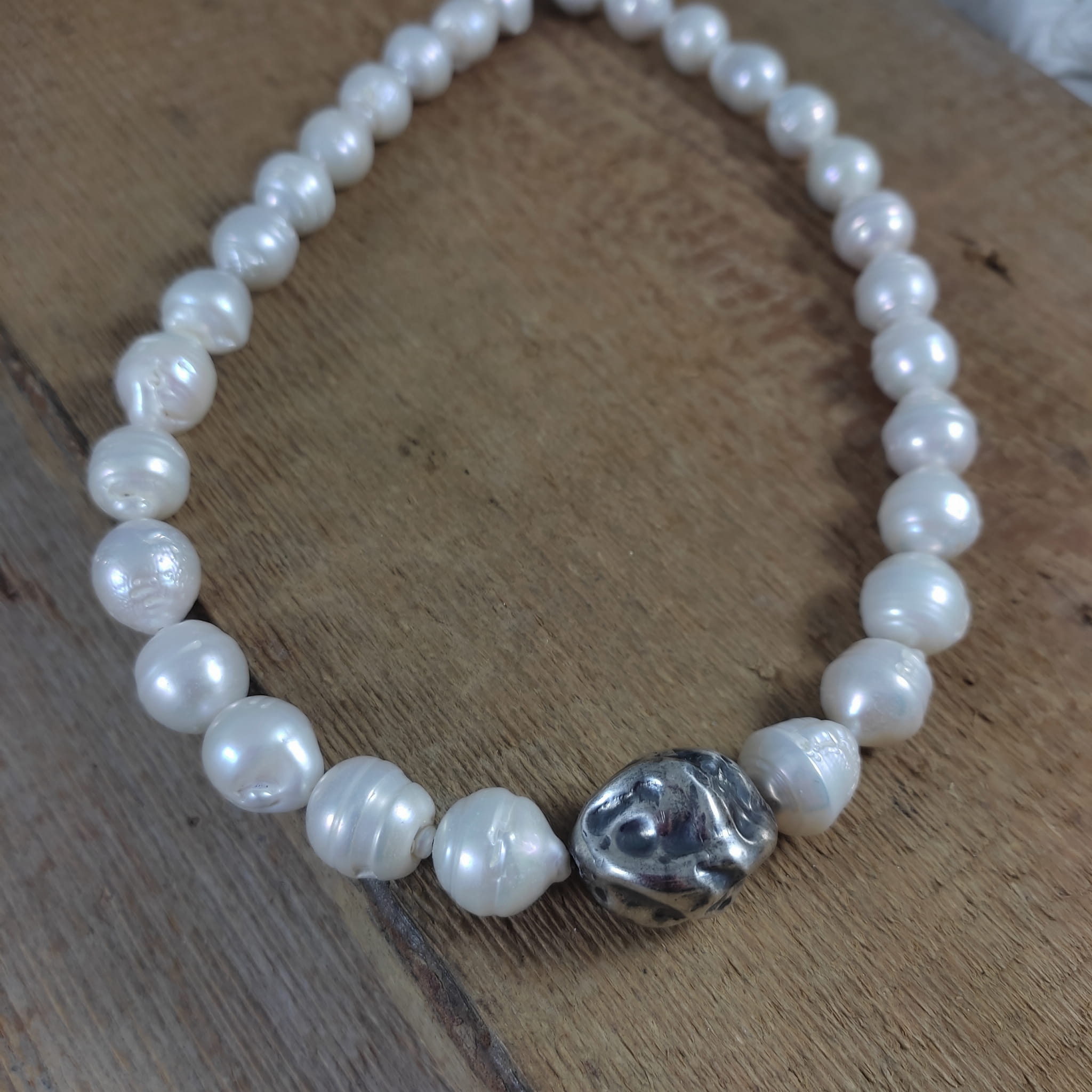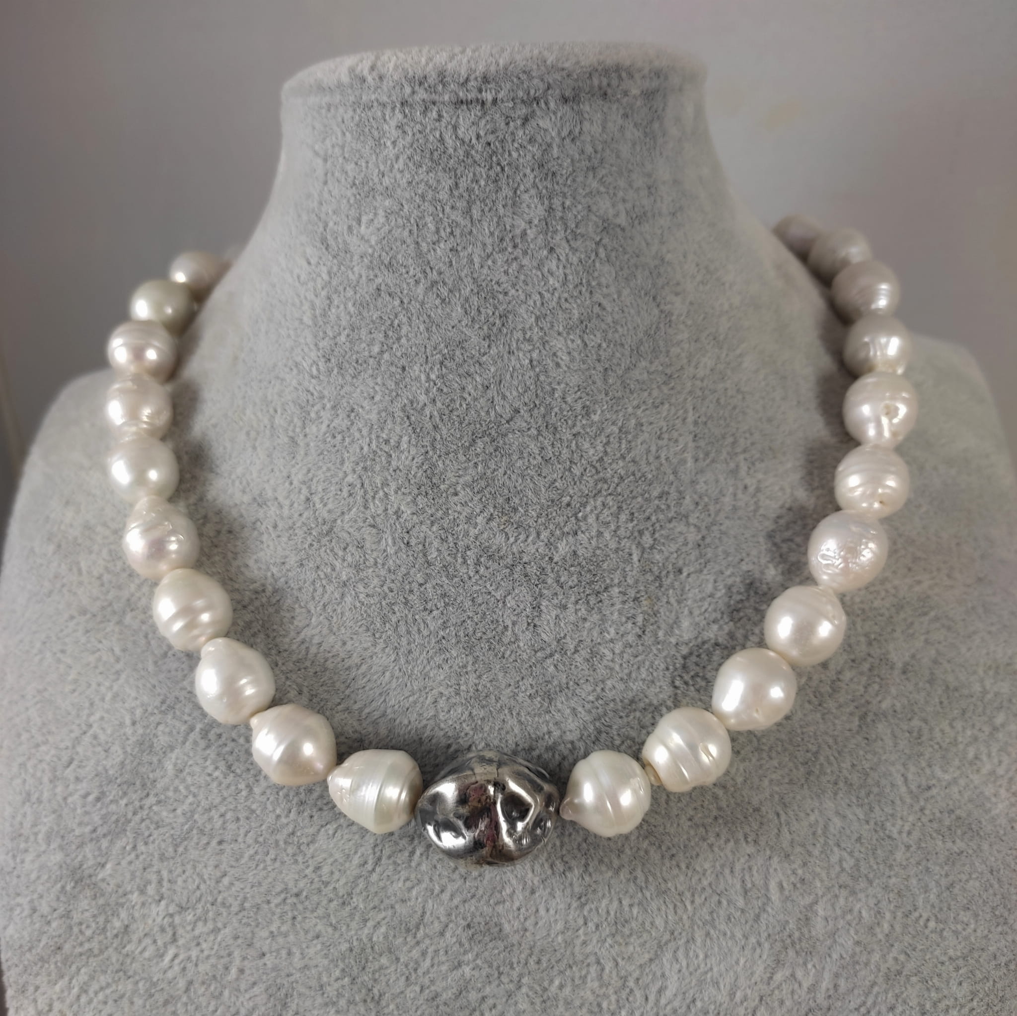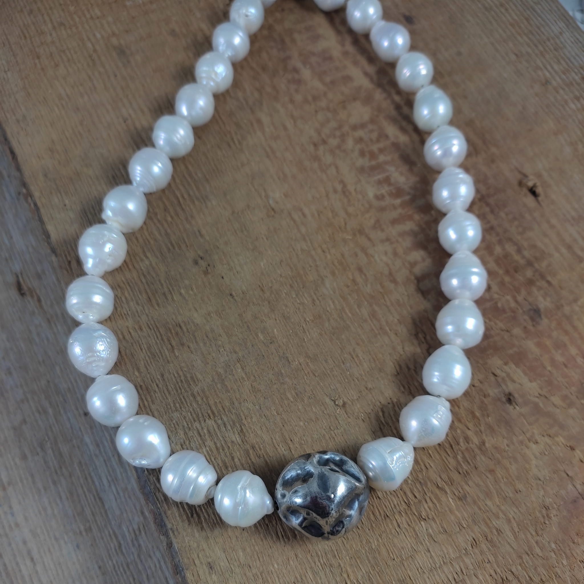 Naszyjnik wykonany z pereł o wielkości 1,2-1,4/1,2 mm. Całość dopełniona srebrem 925, oksydowanym i wypolerowanym.