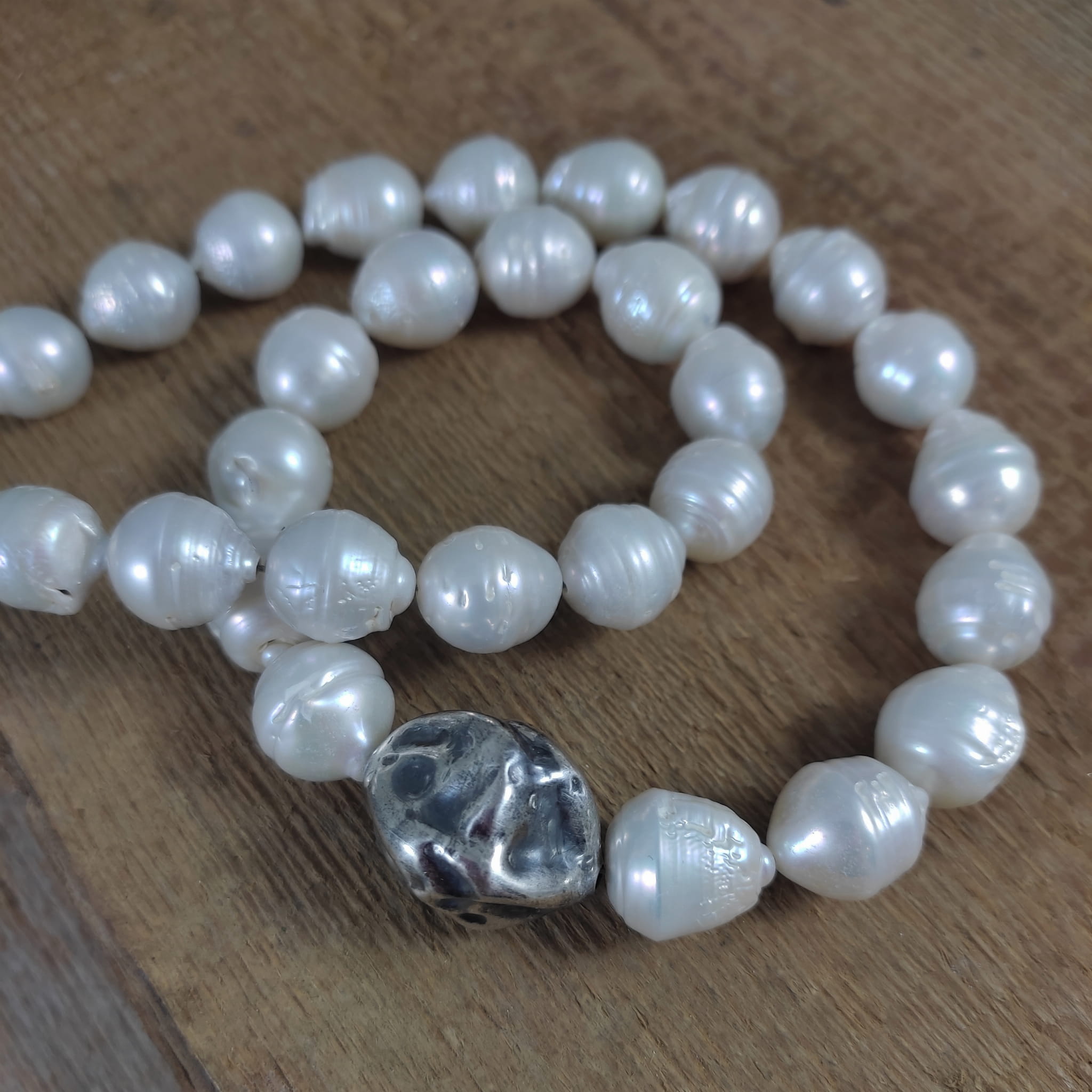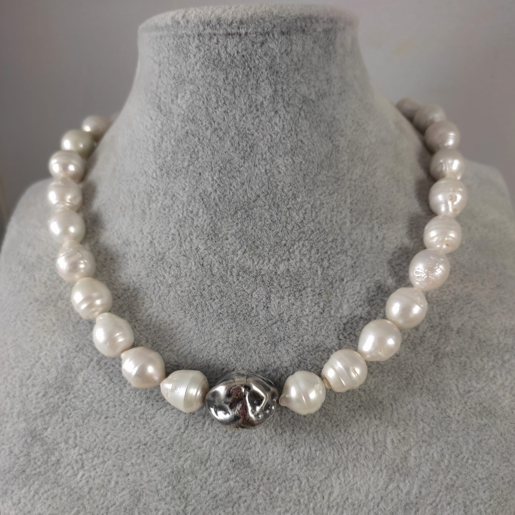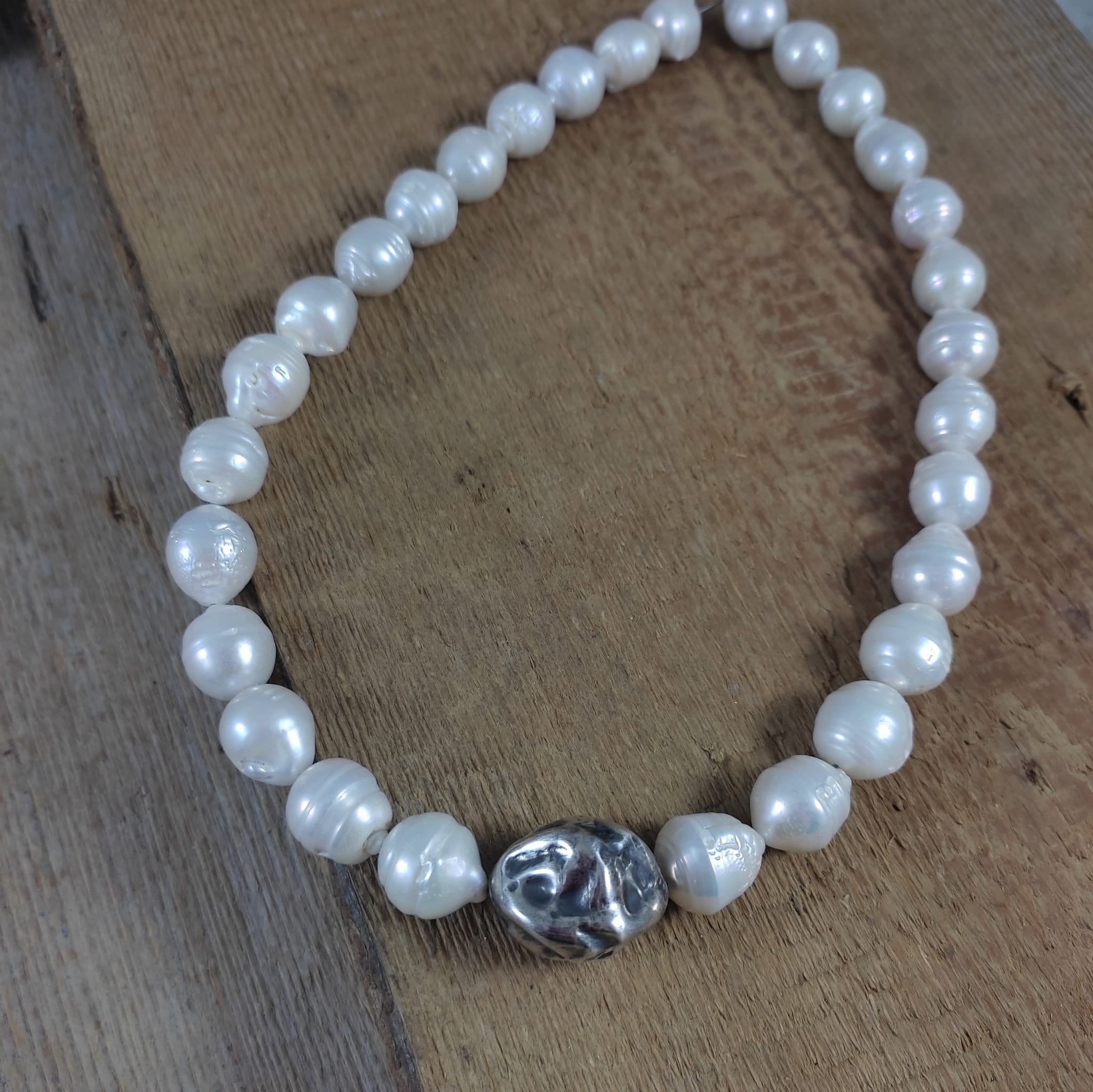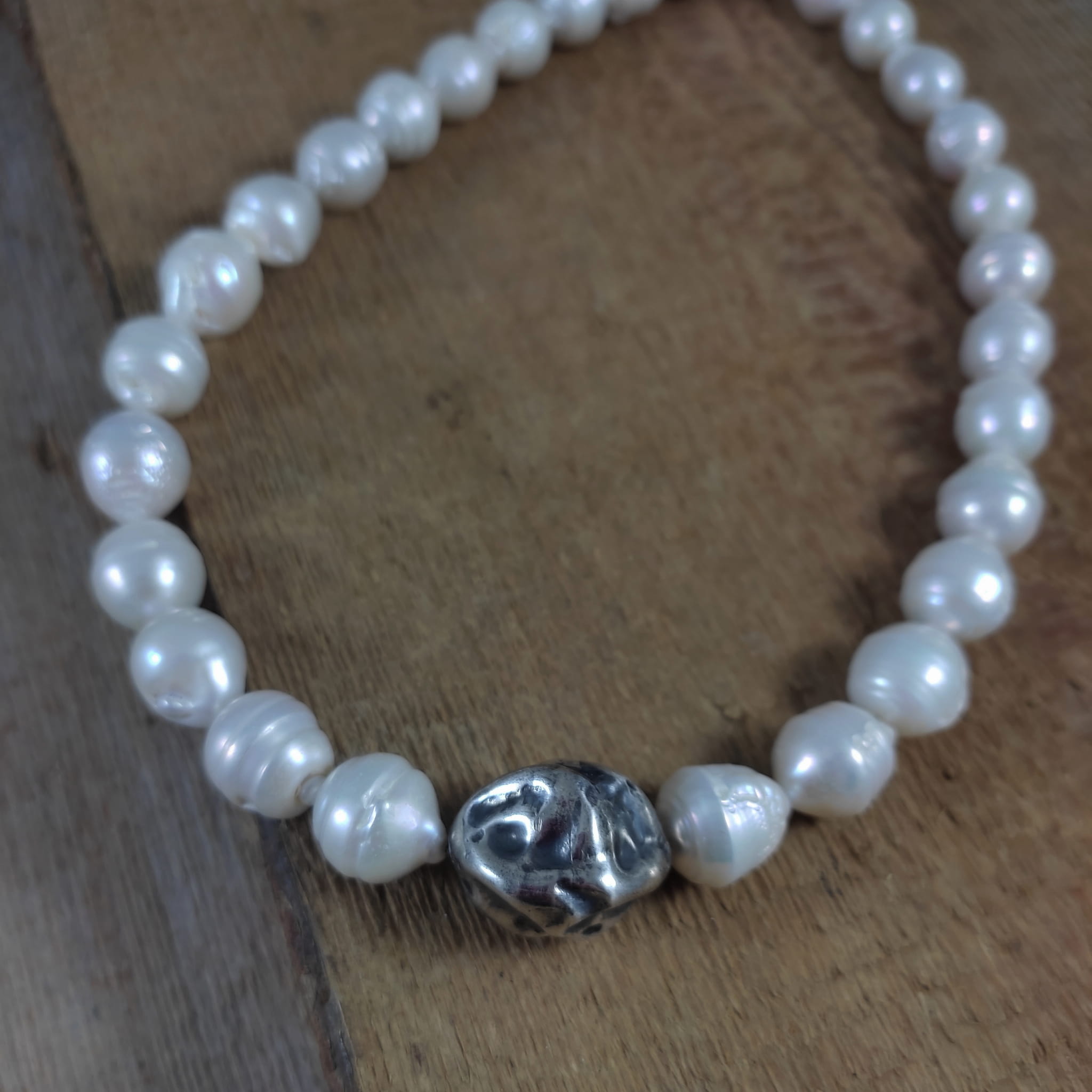 Naszyjnik wykonany z pereł o wielkości 1,2-1,4/1,2 mm. Całość dopełniona srebrem 925, oksydowanym i wypolerowanym.