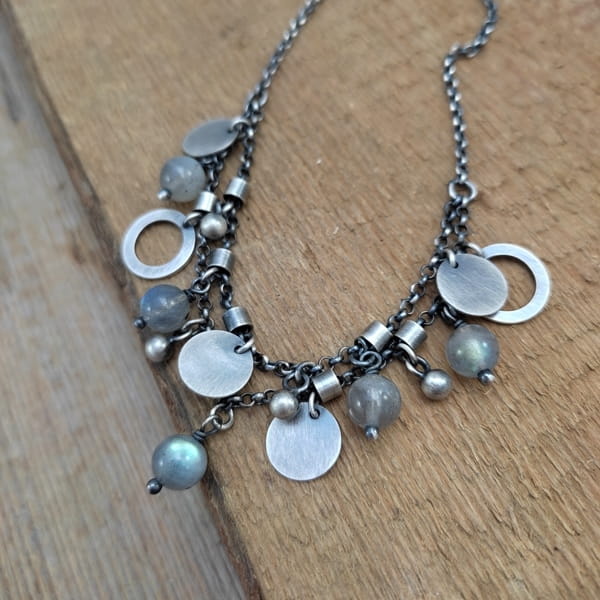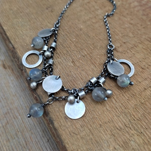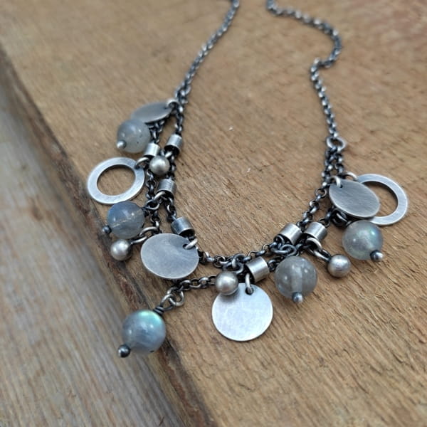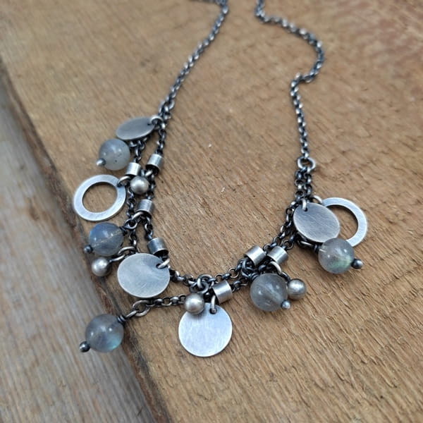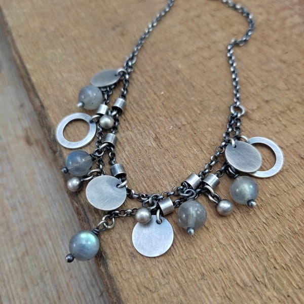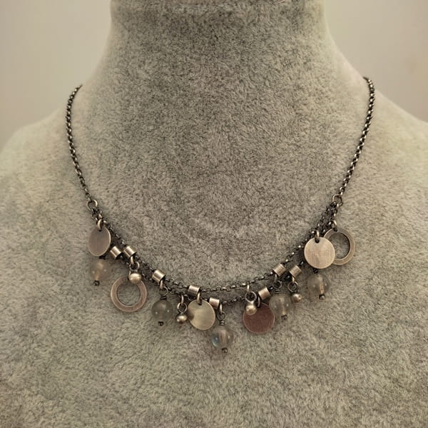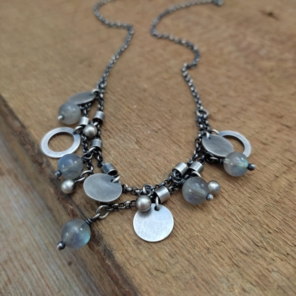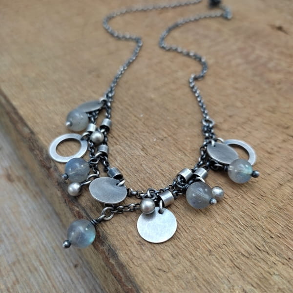 Naszyjnik wykonany z kul labradorytu 7 mm. Całość wykończona w srebrze 925, oksydowanym i wypolerowanym. Długość naszyjnika wynosi ok. 40/45/50 cm, plus łańcuszek regulacyjny 5 cm. (Proszę wpisać w komentarzu, w przypadku braku wysyłamy 45 cm).