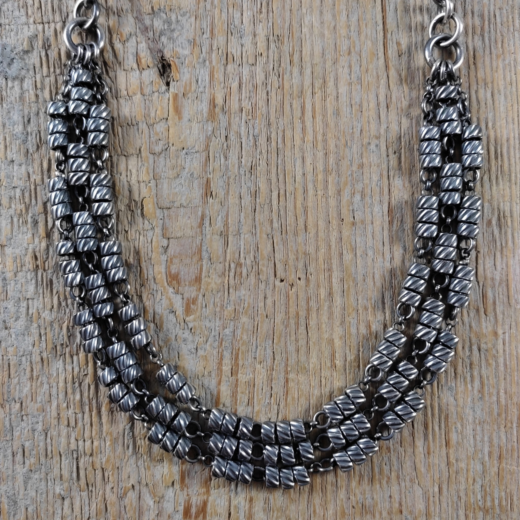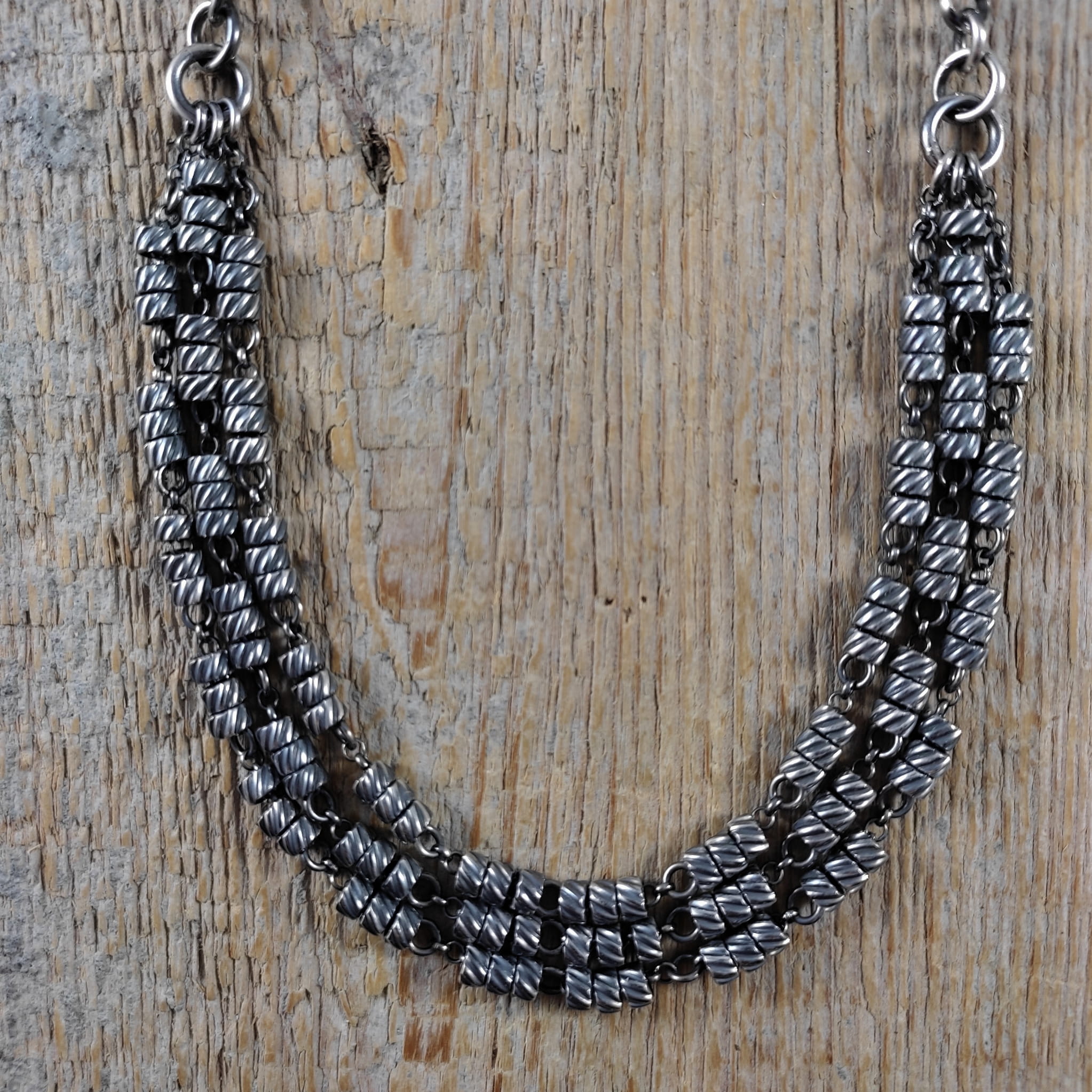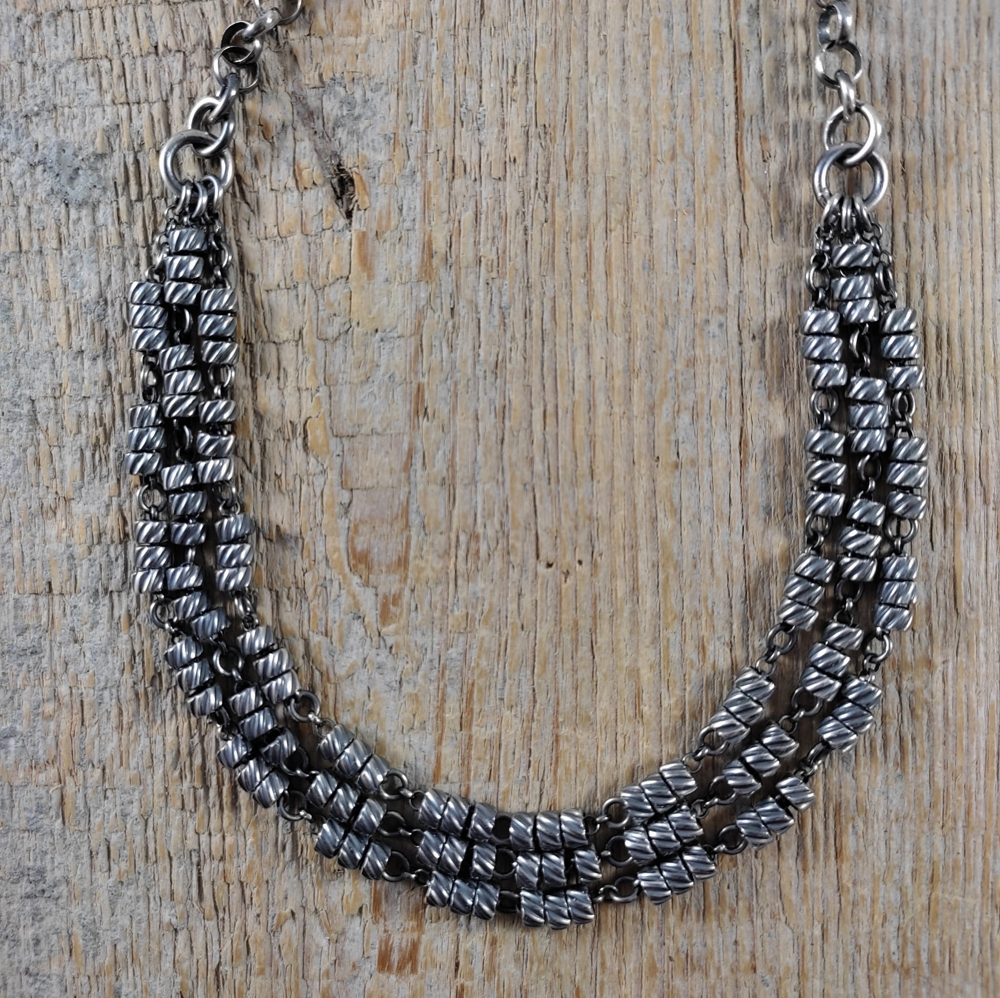 Naszyjnik ze skręconymi rurkami na łańcuszkach