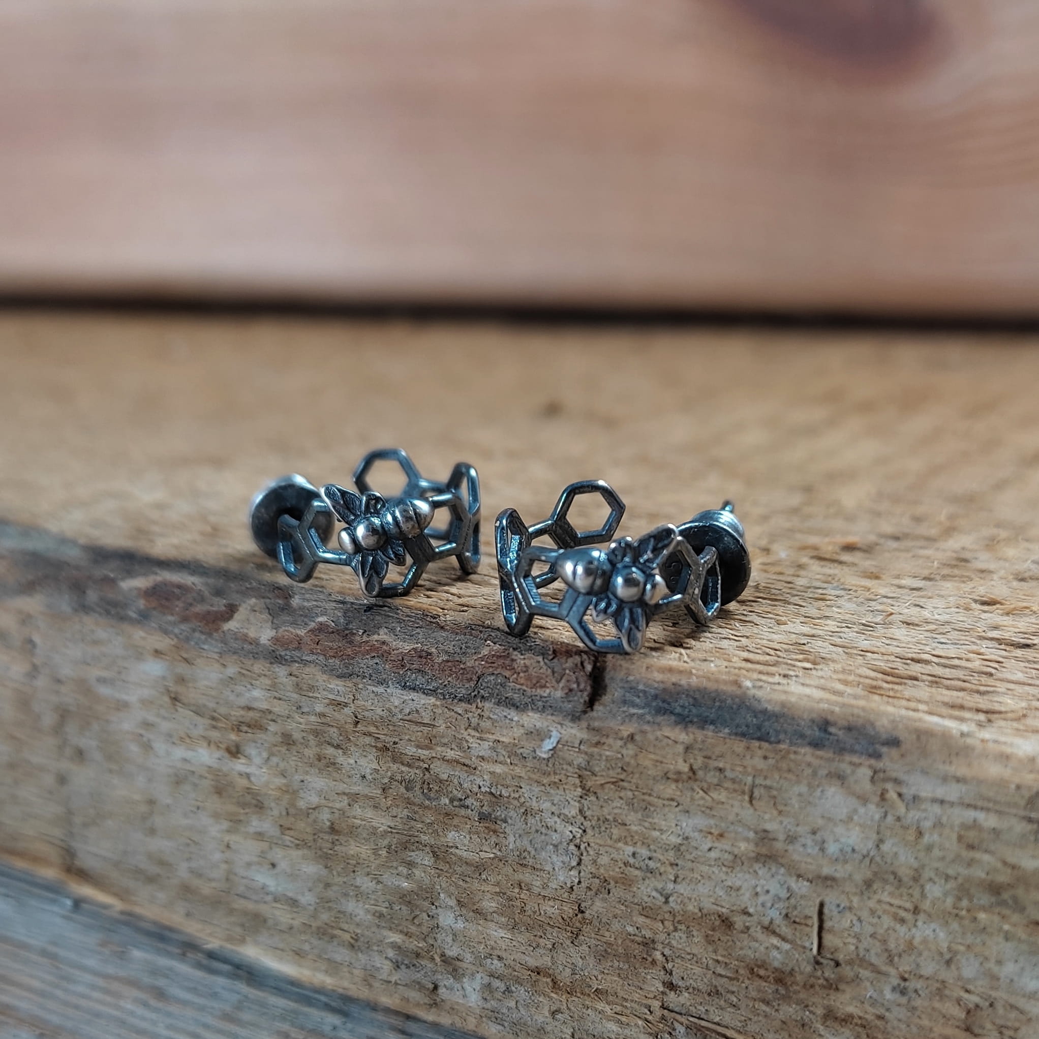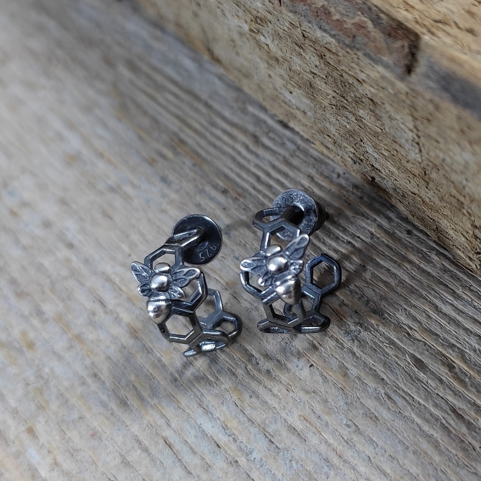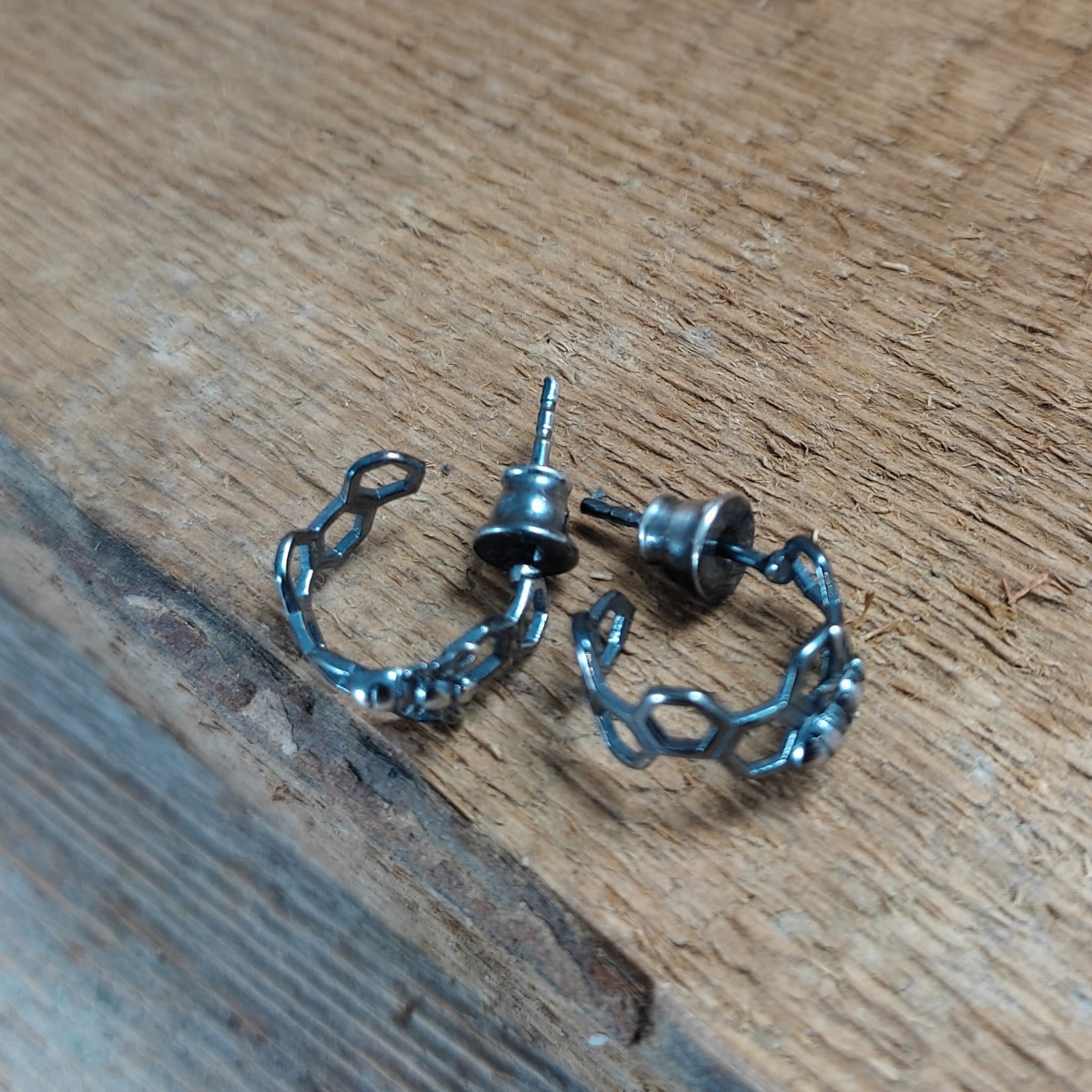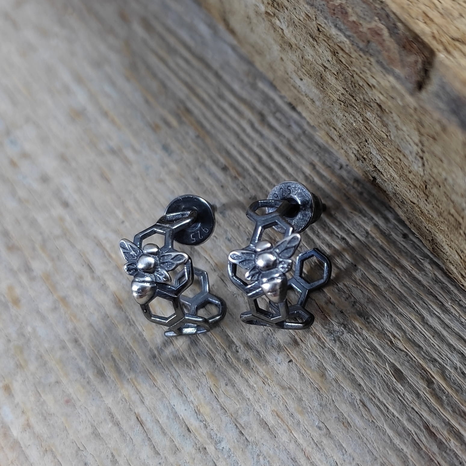 Kolczyki - sztyfty wykonane ze srebra 925, oksydowanego i wypolerowanego. Całkowita długość kolczyków wynosi ok. 1,2 cm. Waga: 1,30 g. Elegancko zapakowane.