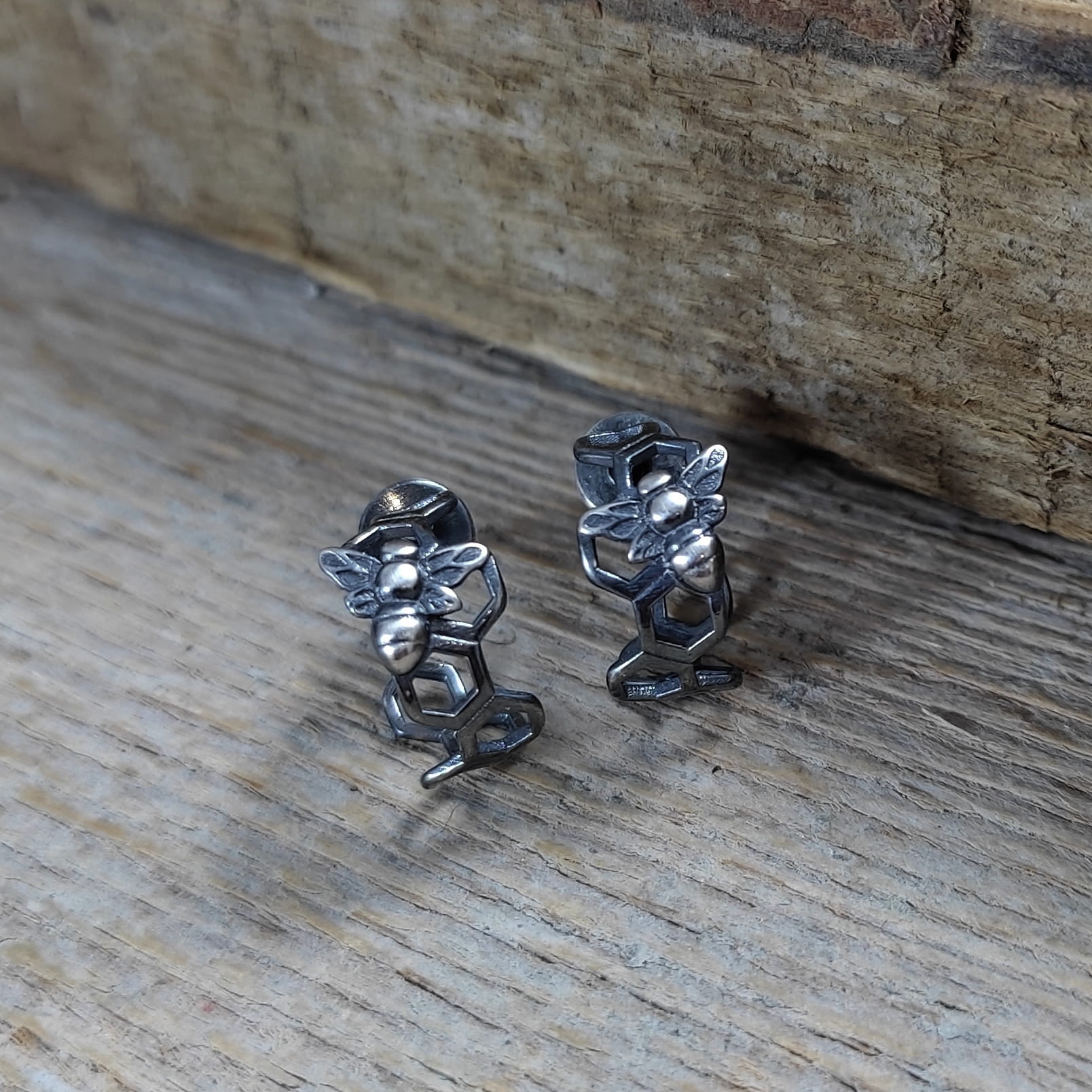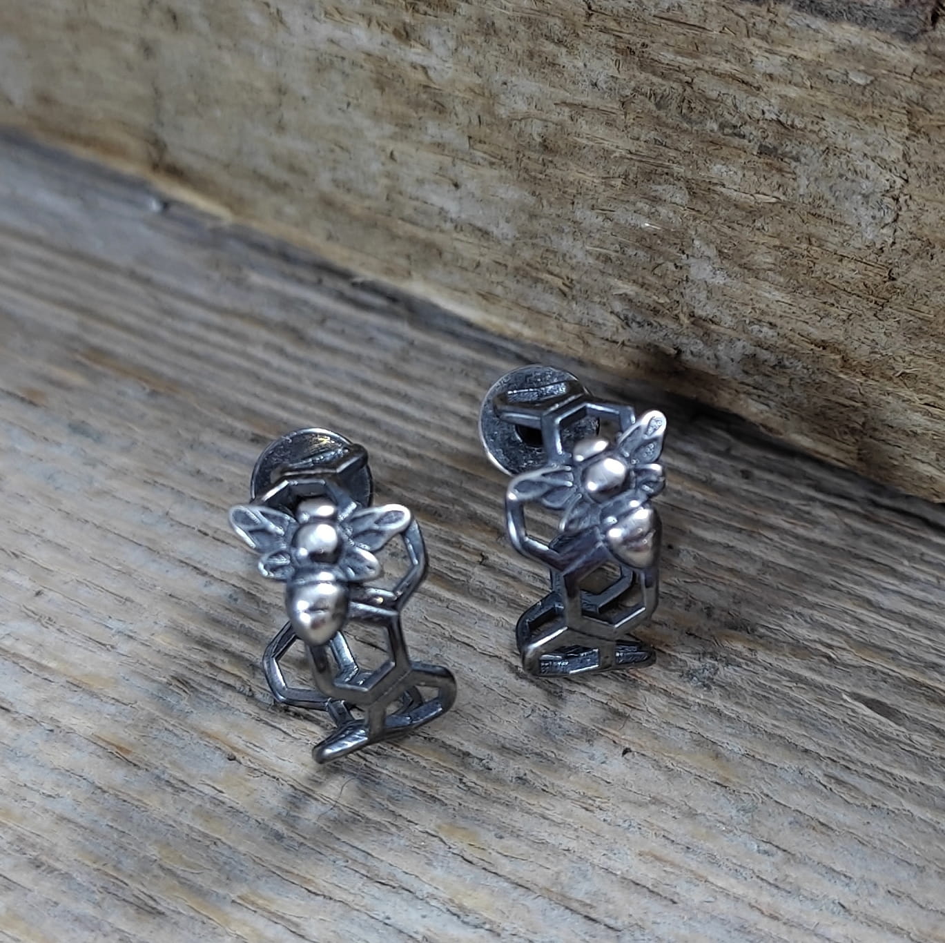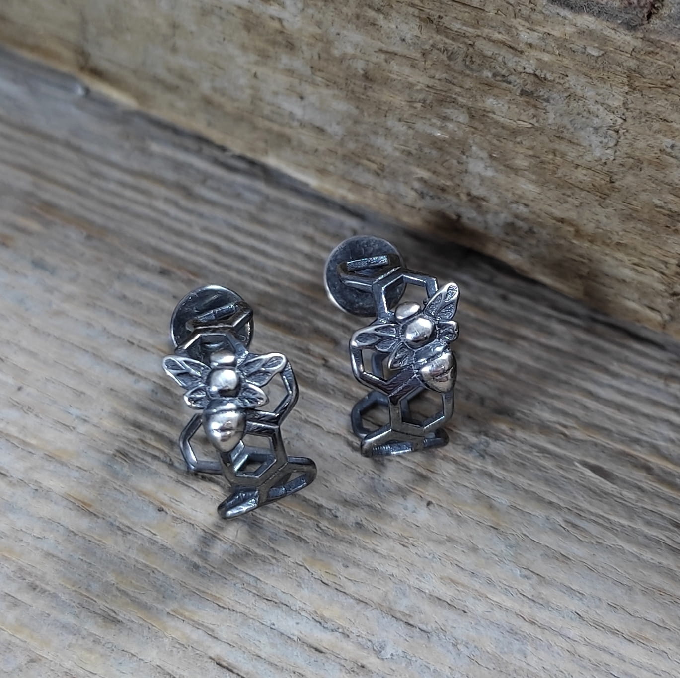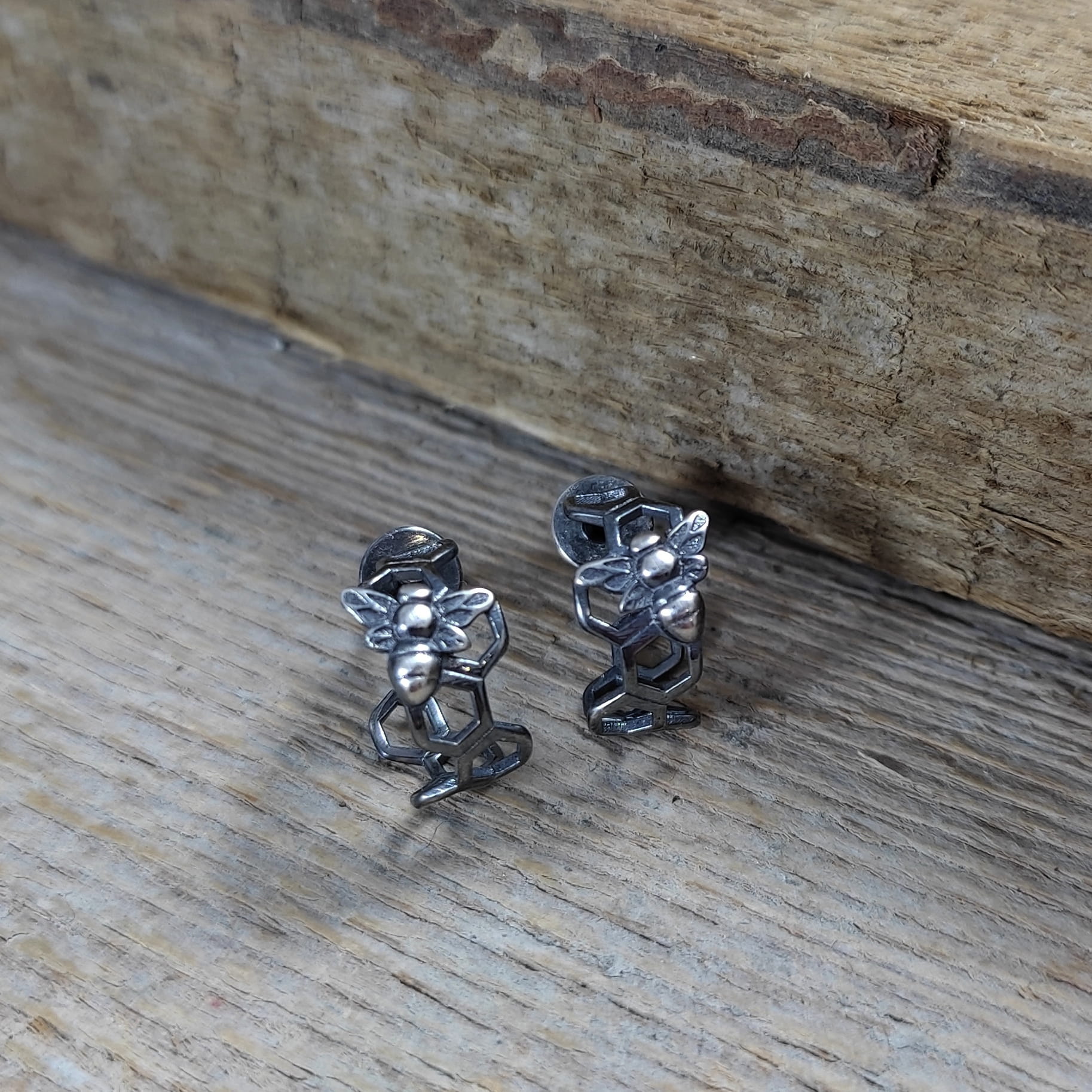 Kolczyki - sztyfty wykonane ze srebra 925, oksydowanego i wypolerowanego. Całkowita długość kolczyków wynosi ok. 1,2 cm. Waga: 1,30 g. Elegancko zapakowane.