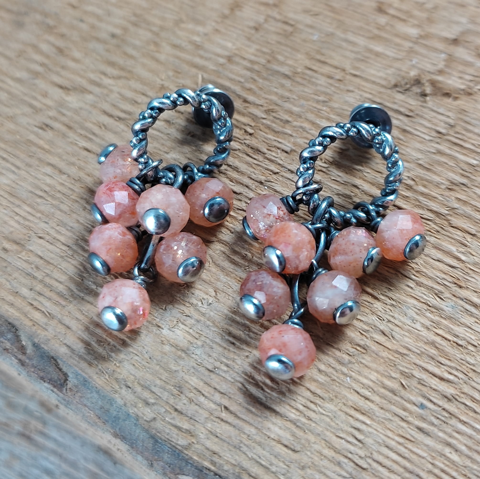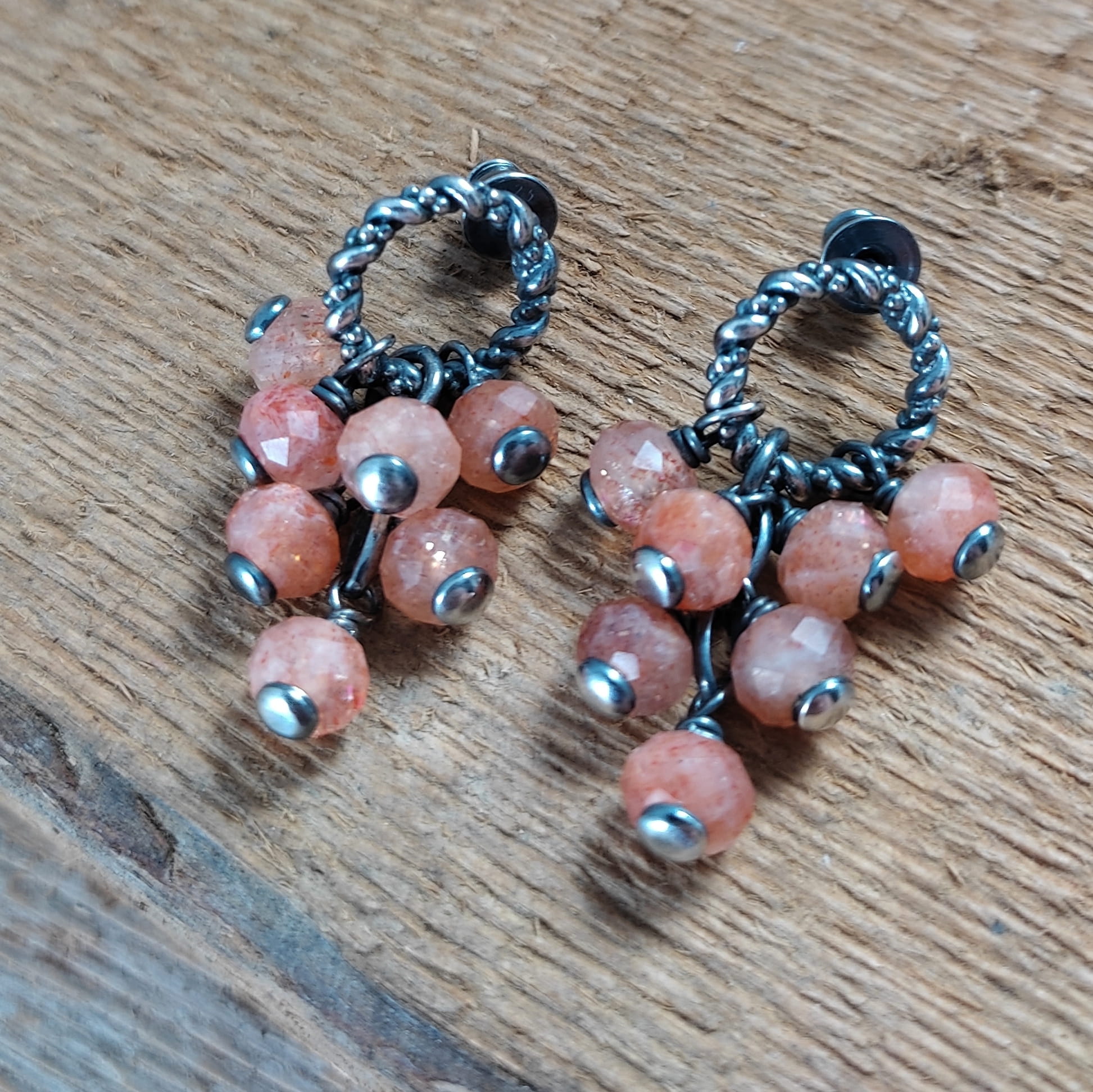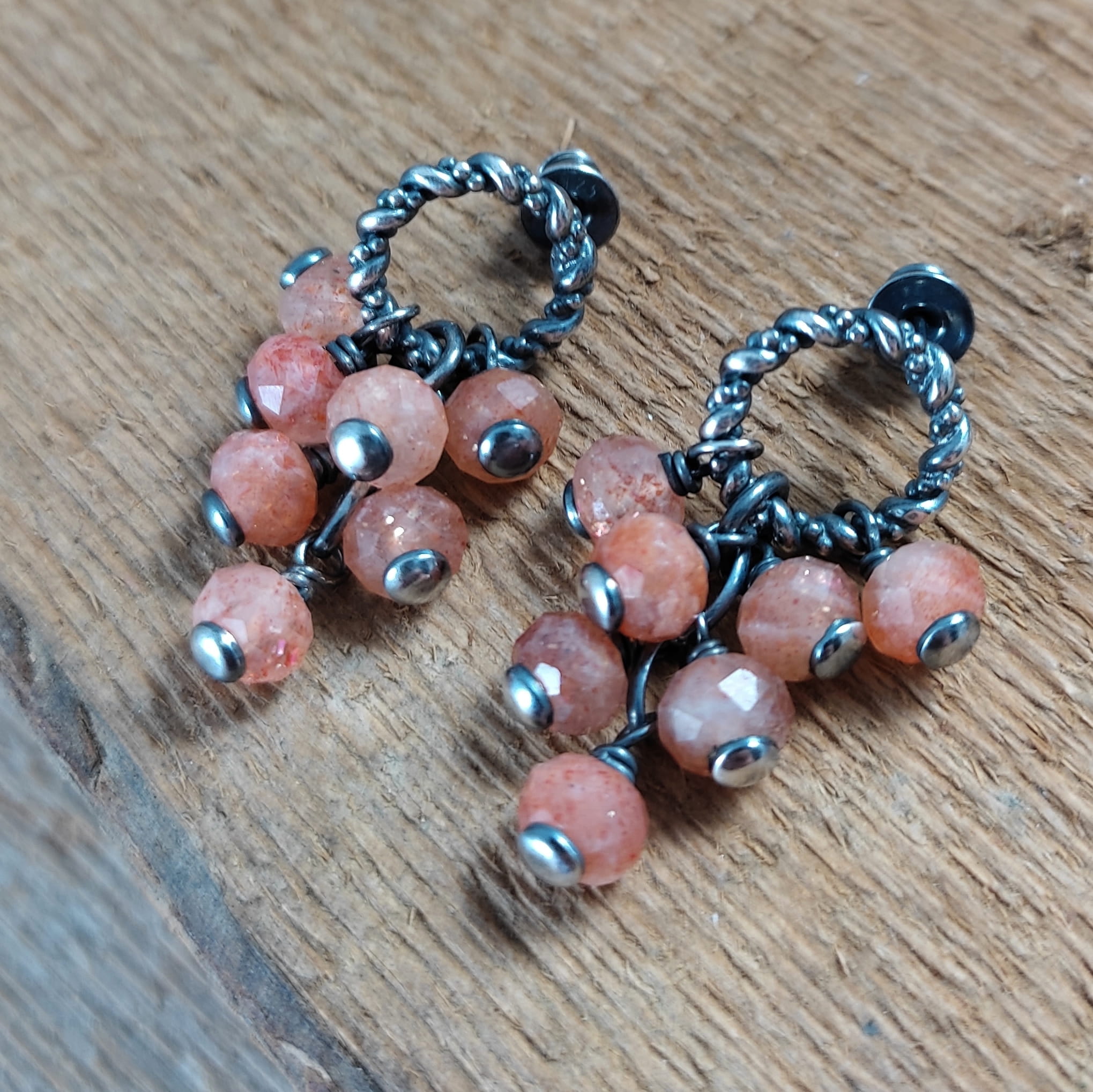 Kolczyki wykonane z oponek kamienia słonecznego ok. 6 mm. Całość oprawiona w srebro 925, oksydowane i wypolerowane. Długość całkowita kolczyków wynosi ok. 3,2 cm. Elegancko zapakowane.