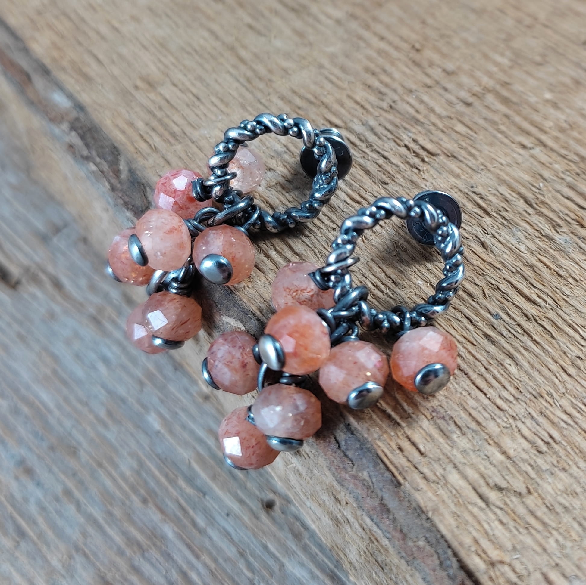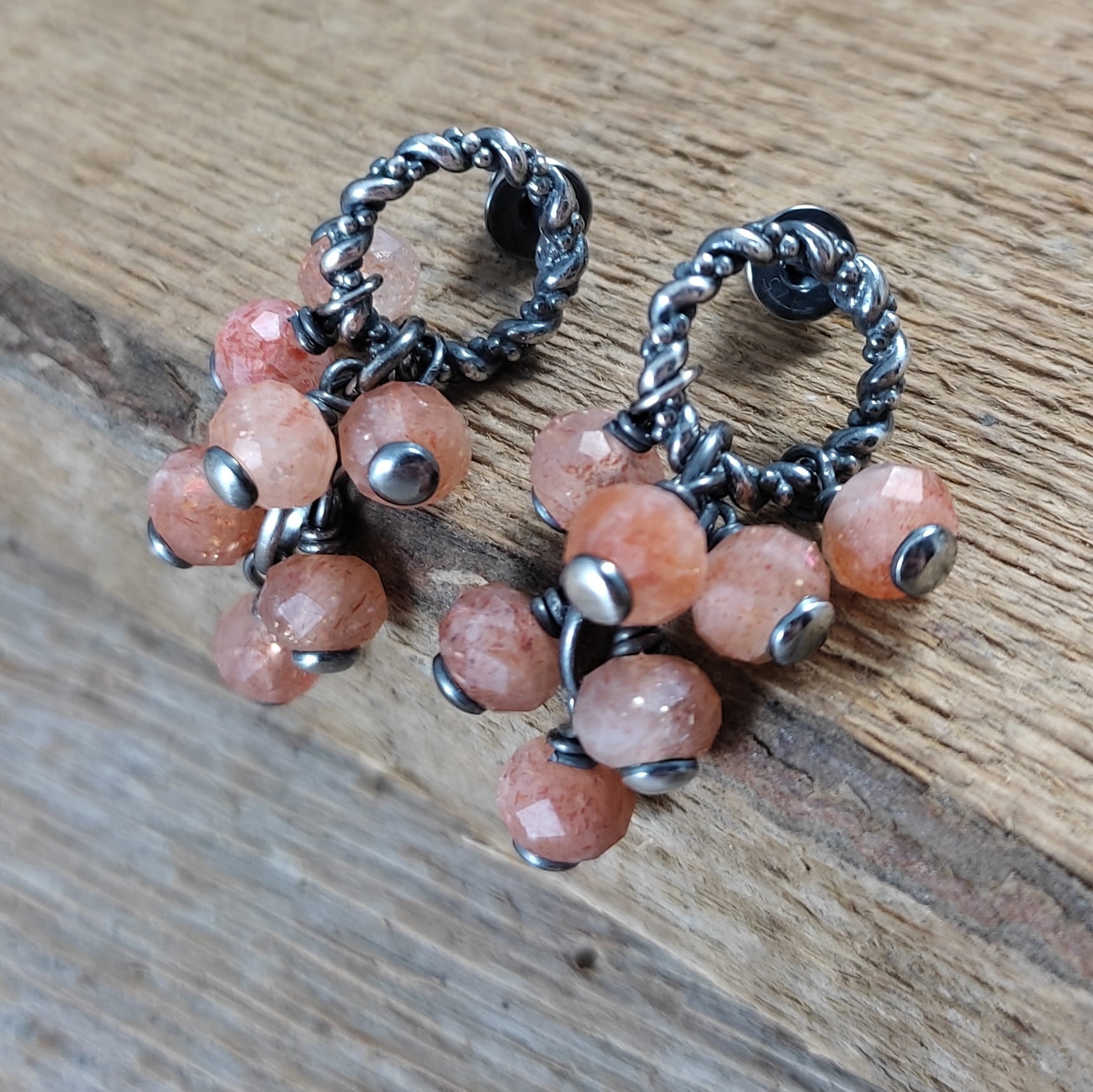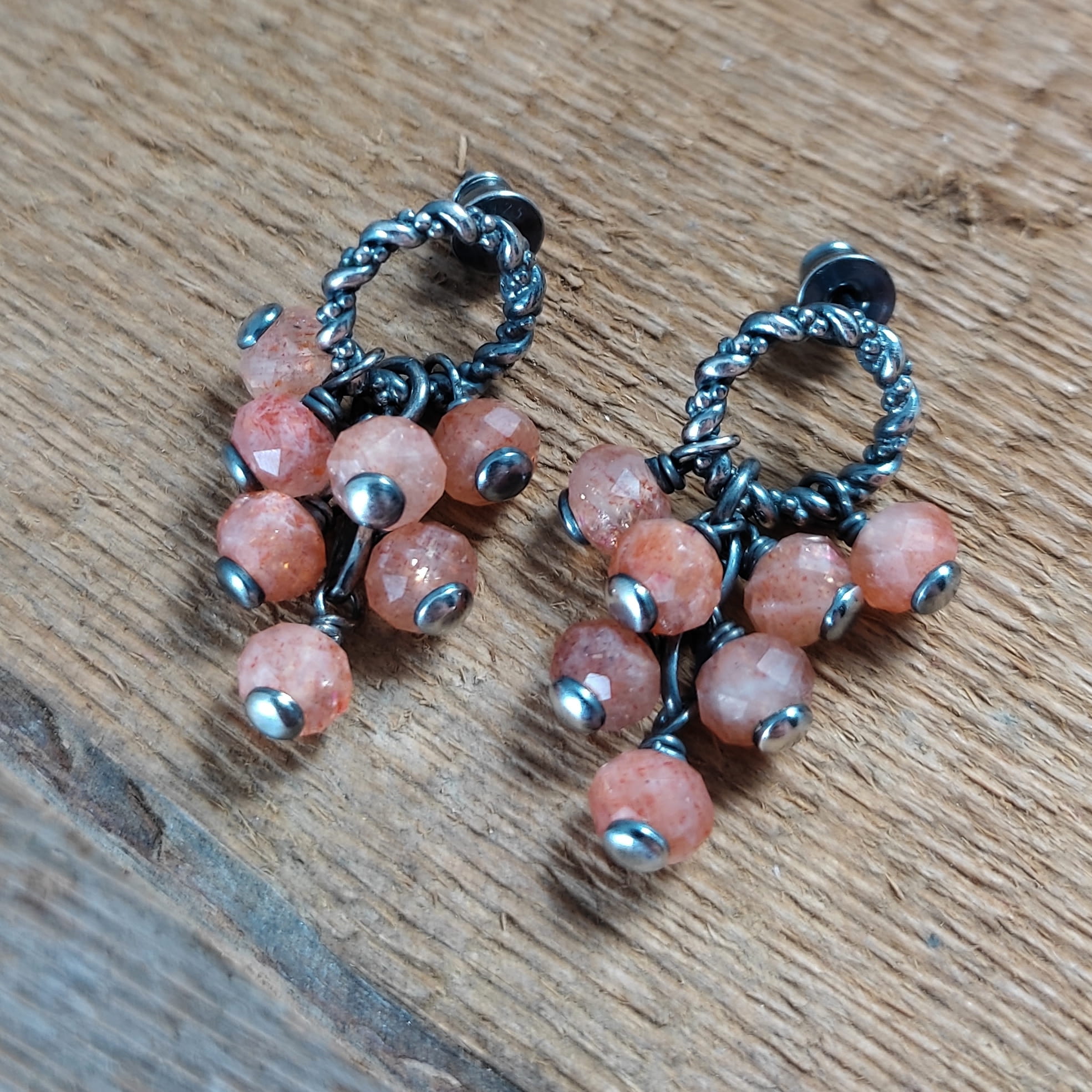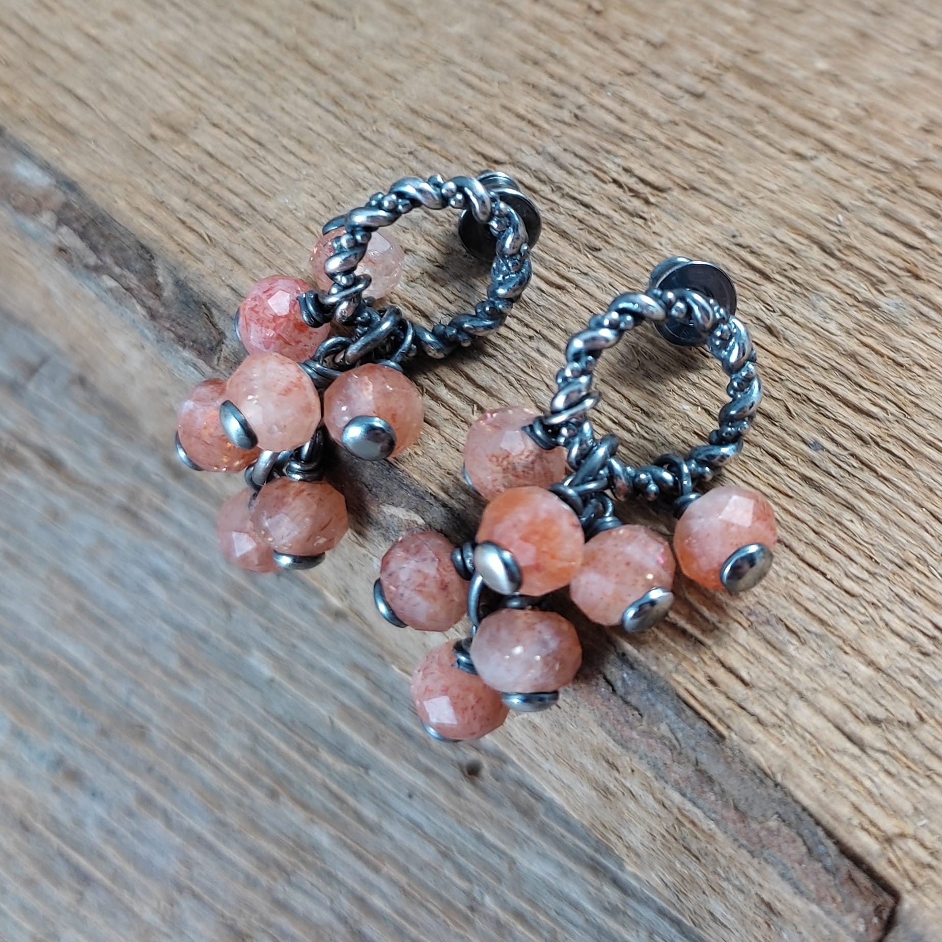 Kolczyki wykonane z oponek kamienia słonecznego ok. 6 mm. Całość oprawiona w srebro 925, oksydowane i wypolerowane. Długość całkowita kolczyków wynosi ok. 3,2 cm. Elegancko zapakowane.