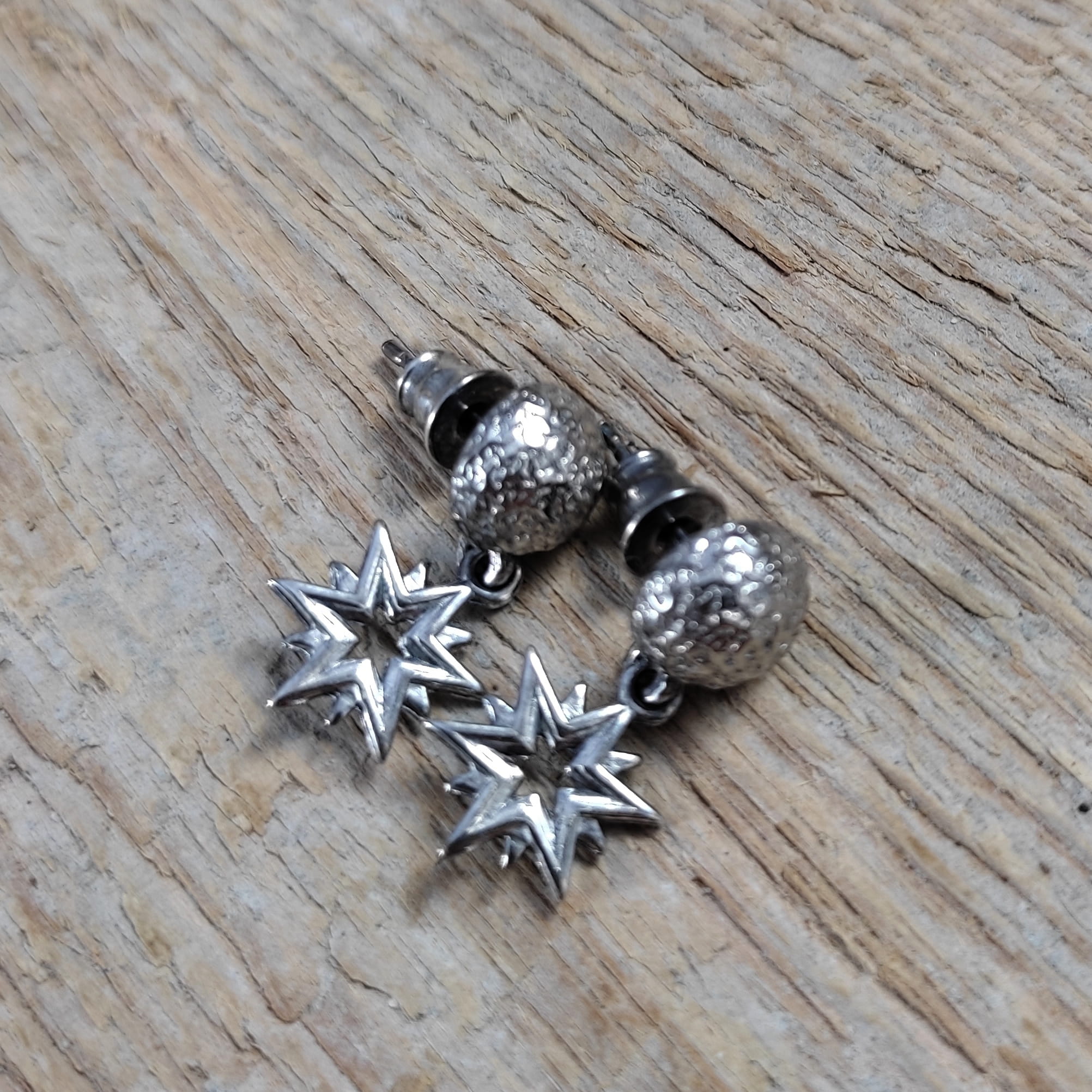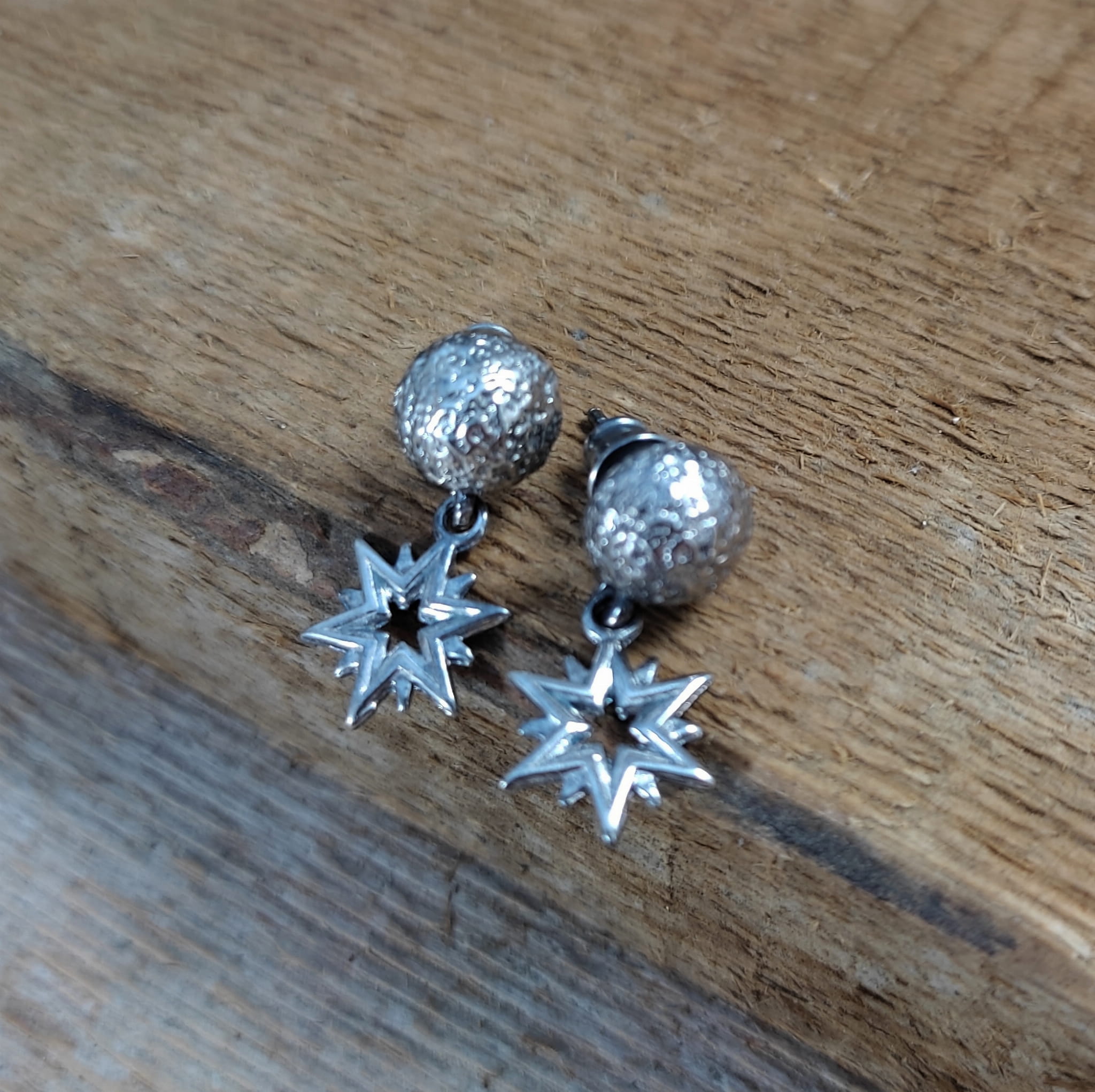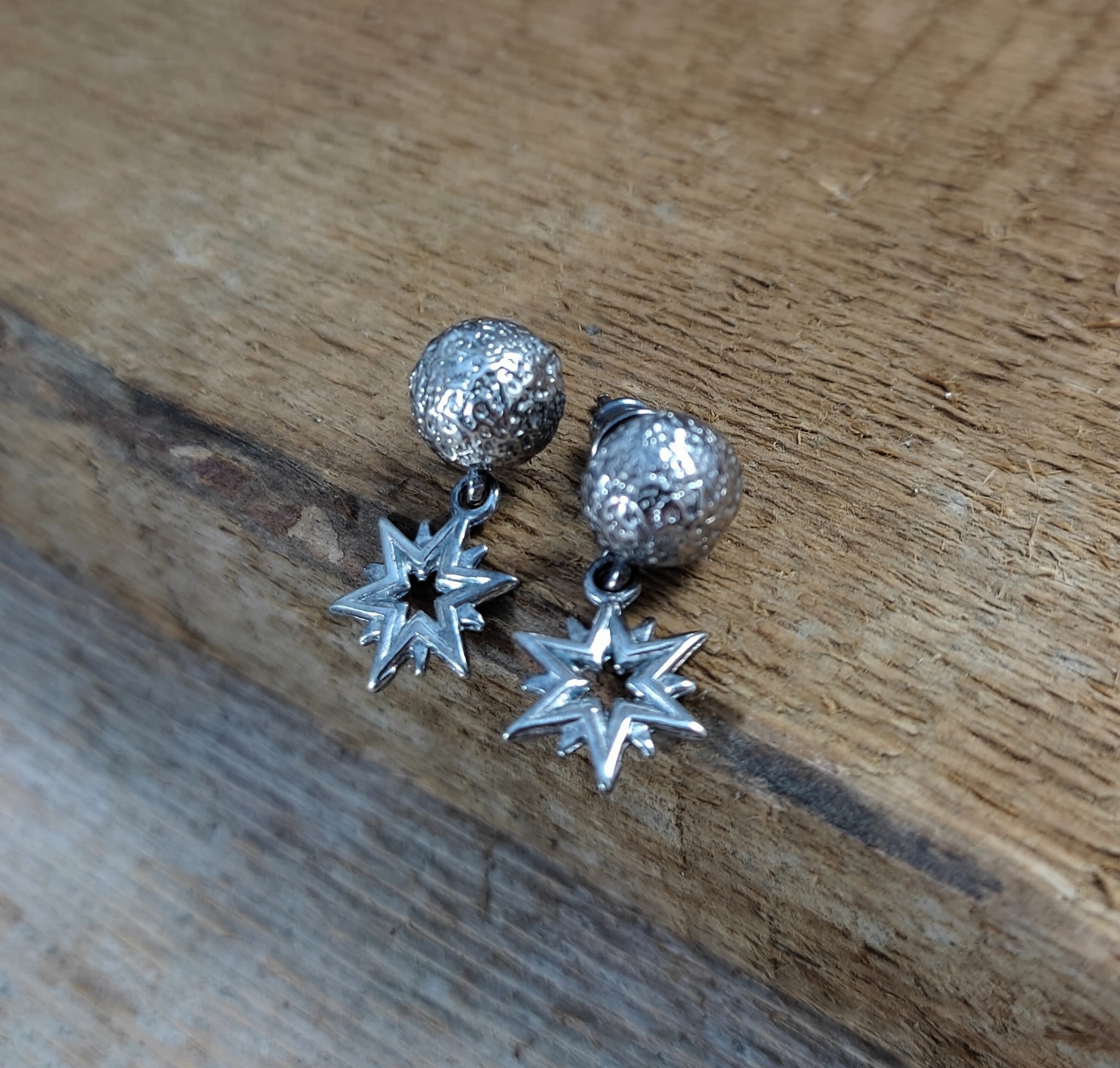 Kolczyki wykonane ze srebra 925, oksydowanego i wypolerowanego. Wielkość gwiazdki ok 10 mm. Całkowita długość kolczyków wynosi ok. 21 mm. Elegancko zapakowane.