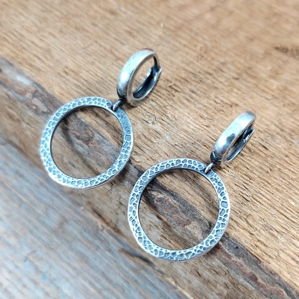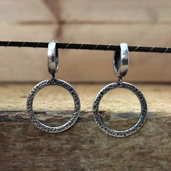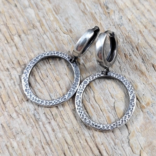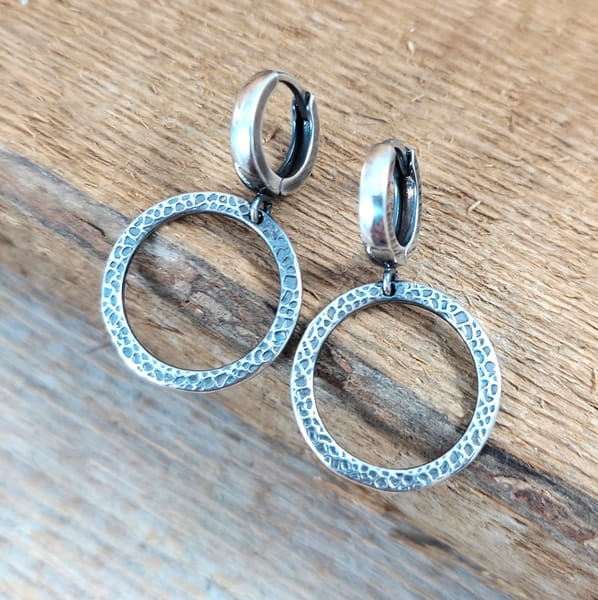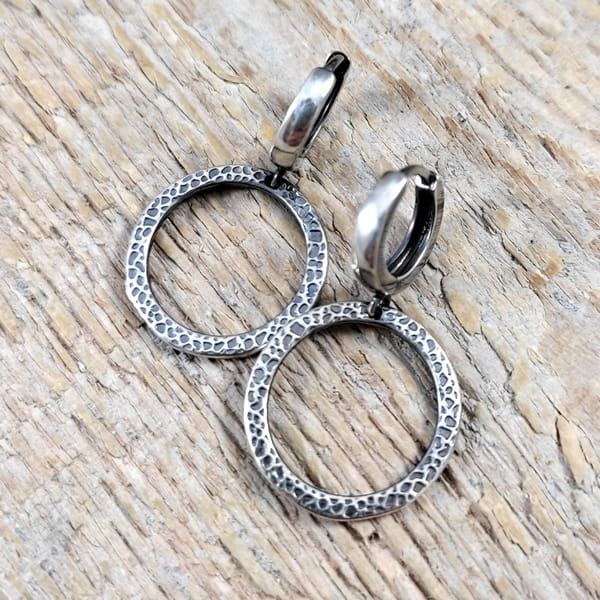 Kolczyki wykonane ze srebra 925, oksydowanego i wypolerowanego. Całkowita długość kolczyków wynosi ok. 3,2 cm. Elegancko zapakowane.