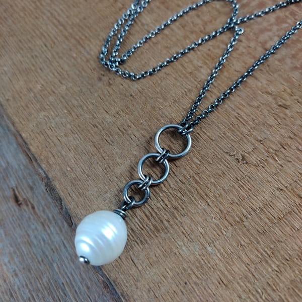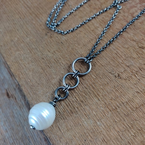 Wisiorek wykonany ze srebra 925, oksydowanego i wypolerowanego.